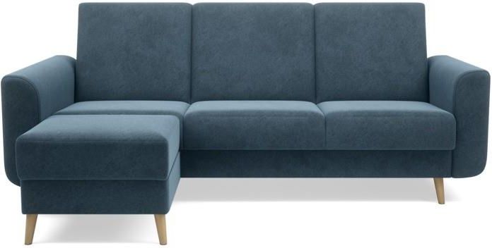 Narożnik MAKALU to model, który zaskakuje wbudowanym typem spania wersalkowego spotykanym najczęściej w sofach. Pozwoliło to na zastosowanie wysokiego oparcia oraz wbudowania sprężyny falistej zarówno w oparciu jak i siedzisku. Mocną stroną narożnika jest zastosowana tkanina, MILO. Posiada cechy ułatwiające dbanie o czystość, jej powierzchnię pokryto specjalną powłoką utrudniającą wchłanianie rozlanym płynów, dając tym samym czas do usunięcia plamy.Niebieski kolor tkaniny kontrastuje z jaśniejszym odcieniem nóżek drewnianych. FUNKCJA SPANIA Mechanizm ułatwiający rozkładanie typu wersalkowego pozwala na uzyskanie dodatkowej powierzchni spania, co jest niezwykle istotne w przypadku niewielkich przestrzeni mieszkalnych oraz w sytuacjach, gdy odwiedzą nas niespodziewani goście.POJEMNIK NA POŚCIEL Cała przestrzeń pod siedziskiem została zagospodarowana jako pojemnik.