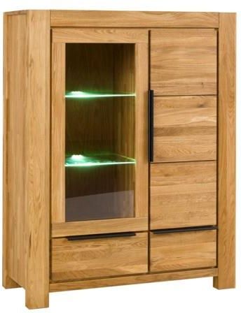 Chciałbyś ustawić witrynę przy ścianie, na której wisi obraz czy lustro lub zamontowano na niej włączniki światła? Wybierz witrynę niską i wygodnie sięgaj do włączników (jeśli zamontowano je na wysokości 140 cm) lub wykorzystaj przestrzeń na ścianie do zaprezentowania dzieł sztuki. W witrynie niskiej NENA możesz wyeksponować filiżanki lub kieliszki, przechować cięższe naczynia i sztućce lub dokumenty. Witrynę warto doposażyć w zestaw oświetleniowy, by podkreślić urok wystawionych przedmiotów. WNĘTRZE W 2 szufladach możesz przechowywać sztućce lub drobniejsze przedmioty. W zamykanej szafce znajdują się 2 półki z drewna, na których możesz ustawić przedmioty o wadze 25 kg. W witrynie znajdują się 2 półki ze szkła hartowanego, na których możesz ustawić przedmioty o wadze 10 kg. WYKOŃCZENIE Meble z kolekcji NENA wykonano z drewna dębowego. Meble wykończono olejem, który wydobywa naturalny urok drewna. Metalowe, czarne uchwyty podkreślają nowoczesny charakter kolekcji. Fronty witryn wyposażono w szkło hartowane o grubości 6 mm. ARANŻACJA Meble z kolekcji NENA pozwolą Ci uzyskać rustykalny efekt w nowoczesnym wnętrzu. Możesz zestawiać je z dodatkami z naturalnego drewna, ale estetycznie prezentują się także wśród betonowych ścian i dekoracji z metalu. Wyrazista struktura drewna o ciepłym odcieniu tworzy aranżację o przytulnym charakterze.