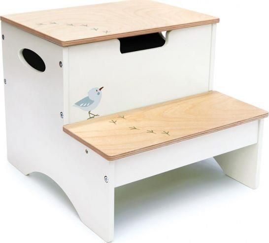 Schodek czy schowek? Jeden mebel, który wspiera samodzielność i porządek w dziecięcym pokoju. Z pięknej, leśnej kolekcji Forest.Tender Leaf Toys drewniany schowek Forest Steps to uroczy, drewniany mebelek do pokoiku dziecięcego urządzonego w stylu skandynawskim, nawiązującym do zasad pedagogiki Montessori lub waldorfskiej. Posiada dwa schodki, a w wyższym otwieraną klapę z miejscem do przechowywania. Wykorzystacie go także w łazience do samodzielnego mycia rączek oraz w kuchni, do wspólnego gotowania. Stabilna konstrukcja, naturalne materiały, nietoksyczne farby, pastelowe kolory i piękne wzornictwo sprawią, że maluch polubi swój schodek-schowek. Za precyzyjne wykonanie i estetyczny wygląd pokochają go także rodzice. Mebelek z pewnością doda pokoikowi dziecięcemu niezwykłego charakteru. Krzesełka pasują do innych mebli i zabawek z kolekcji Forest. Wiek: 3+ Materiał: Drewno FSC Wymiary produktu: 33 cm x 36,4 cm x 29 cm Wymiary opakowania: 41,5 cm x 36,5 cm x 5 cm