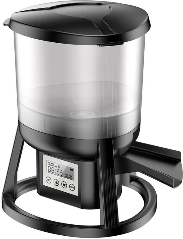 - wyrzutnia do 1 metra - kąt wyrzutu pokarmu: 120 stopni - zasilany na akumulator - czas działania 180 dni - pojemność kubła: 6l - na pokarm granulki od 3mm do 10mm - wyświetlacz LCD - w pełni programowalny - wodoodporny SUNSUN / GRECH Automatic Fish Feeder: to automatyczny karmnik dla ryb dla średnich i dużych stawów. Producent zadbał o jakość wykonania i funkcjonalność urządzenia. Z pewnością ułatwi codzienne systematyczne karmienie oraz jest niezastąpiony podczas wakacyjnych wyjazdów. Programowanie: Ustal ilość akcji karmienia. Od 1 na dobę do 6'ciu razy na dobę. Ustal dokładne godziny karmienia. Każde karmienia może odbywać się o zaprogramowanej przez Ciebie godzinie z dokładnością do minuty. Ustal długość pojedynczego karmienia, czyli ilość podawanego pokarmu. Od 1 do 20 sekund. Dodatkowe karmienie: Oprócz zaprogramowanych przez ciebie akcji karmienia możesz zawsze uruchomić dodatkowe karmienie ręcznie, kiedy tylko chcesz. Zasilanie bateryjne: W zestawie znajdziesz akumulator oraz ładowarkę. W pełni naładowana bateria ma do 180 dni działania. Wodoodporny: Cały karmnik jest wodoodporny - nawet wyświetlacz i przyciski. Nie musisz się martwić złą pogodą czy mokrymi rękami podczas programowania. Wyświetlacz LCD: Duży i czytelny wyświetlacz przekazuje Ci wszystkie informacje podczas programowania jak i podczas zwykłego działania. Na ekranie przeczytasz m.in stan naładowania baterii. Dane techniczne: - wymiary: 37x31x40cm - pojemność 6l