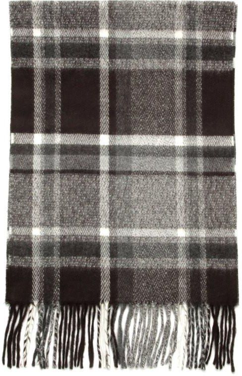 Szal cienki Willsoor Kolor: szara i brązowa krata Tkanina: 100% akryl Długość: 170 cm + 7 cm frędzle Szerokość: 30 cm Producent: Frass (Niemcy) Elegancki szal cienki w stonowanych uniwersalnych kolorach. Urozmaici każdą koszulę, kurtkę czy płaszcz. Zakończony frędzlami.
