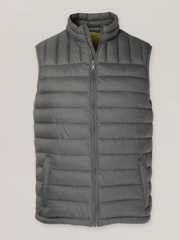 Szara kamizelka pikowana o gładkiej, matowej fakturze z etui do przechowywania