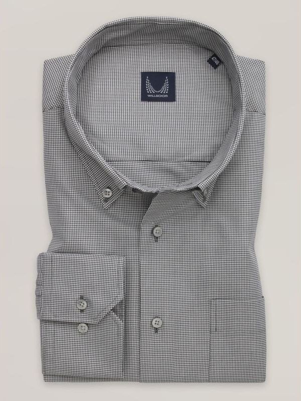 Klasyczna koszula w drobną, czarną i białą kurzą stopkę z podpinanym kołnierzykiem, 100% bawełna ze splotem two-ply