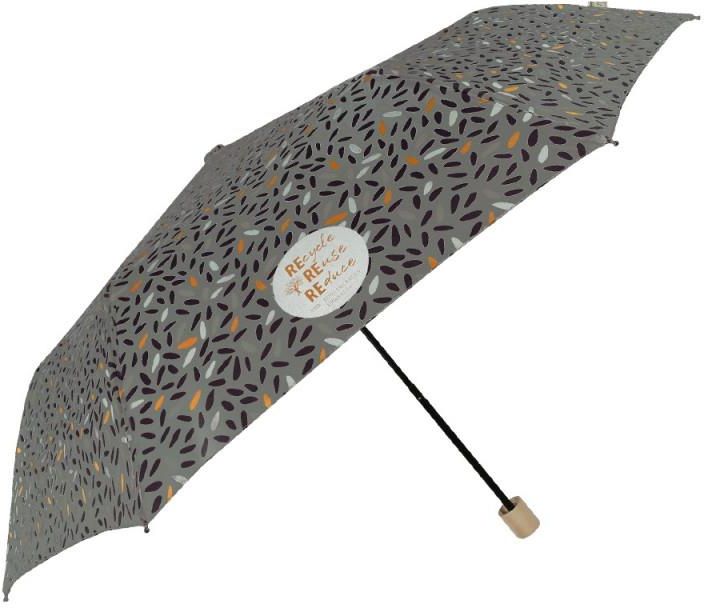 Szary parasol Perletti w granatowe, brązowe i białe wzorki z ekologicznych materiałów, czasza 97 cm