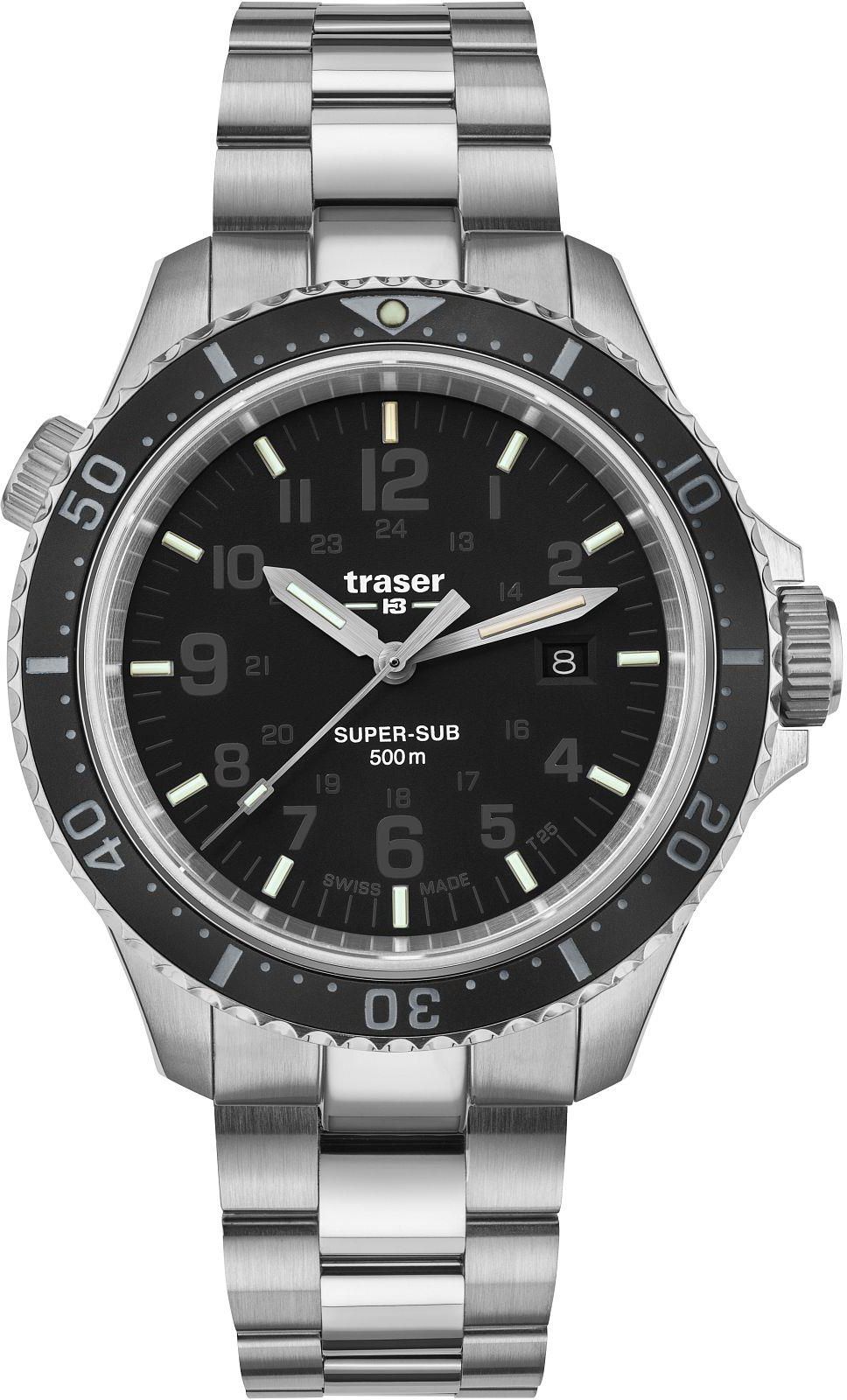 Zegarek męski Traser 109378 P67 SuperSub Black. Solidna konstrukcja, wysoka wodoszczelność i doskonała czytelność to najważniejsze atuty modelu SuperSub Black. Masywna 46-milimetrowa koperta wyposażona została w jedno-rotacyjny bezel, dzięki, któremu nurek może mierzyć czas zanurzenia i szacować …