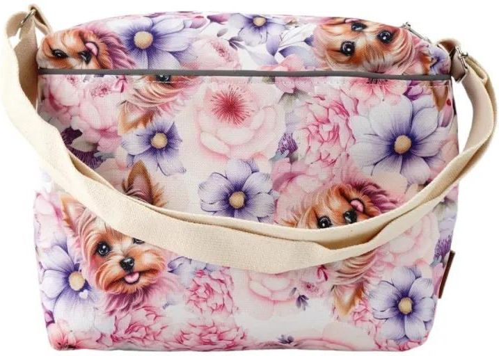 Torebka z Yorkiem dla Dziewczynki – Kwiatowy Wzór, Regulowany Pasek, Odblaski Ta urocza torebka z motywem Yorkshire Terriera została zaprojektowana specjalnie z myślą o dziewczynkach w wieku 6–10 lat. Połączenie pięknego kwiatowego wzoru z ilustracjami małych piesków tworzy idealny dodatek na co …