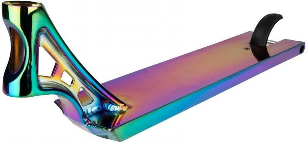 Z radością przedstawiamy deck Blazer Pro Raider. Kompletny Raider odniósł tak duży sukces. że nie mogło zabraknąć podestu. Dostępny w 3 efektownych wersjach kolorystycznych i 3 różnych długościach (w zależności od koloru). Posiada cały szereg funkcji które sprawiają, że jest niesamowicie wszechstronny z tą samą kultową, kutą szyjką Raider. Dostępne długości: Chrome: 500mm (19.68"), Neo Chrome: 530mm (20.86"), Black Chrome: 560mm (22"). Długość: 530mm (20.86")Szerokość: 130mm (5.1")Kształt dropout-u: Boxed (Street)Waga: 1,71 kg - Materiał: Aluminium 6061 T4 & T6, utwardzany cieplnie- Maksymalna średnica koła: 120mm- Maksymalna szerokość koła: 30mm- Główka (komin): Kuta- Stery: Zintegrowane- Długość główki: 105mm- Kąt nachylenia główki: 83.5°- Concave: R2000- W zestawie: Podest, hamulec, oś 8mm, dystanse koła, Griptape, klucz montażowy