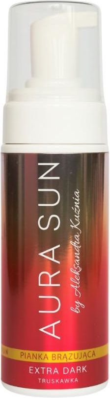 Pianka brązująca - Extra Dark marki AURA SUN. Jest wegańska i w 98% zawiera składniki pochodzenia naturalnego. Posiada przyjemnie lekką piankową konsystencję, która pozwala się miękko i gładko rozprowadzić na skórze twarzy i ciała, bez efektu zacieków, smug oraz plam. Pianka Aura Sun dopasowuje się do naturalnego koloru karnacji (średniej i ciemnej), dając tym samym efekt zdrowej i naturalnej opalenizny. Kosmetyk błyskawicznie się wchłania i nie pozostawia na skórze uczucia lepkości, dzięki czemu od razu po aplikacji można czuć się bardzo komfortowo. Podczas aplikacji jest widoczna warstwa wstępna, która ma ułatwić równomierną aplikację, zaś po jej zmyciu pianka nie pobrudzi ubrań. Efekt kuszącej opalenizny utrzymuje się nawet do 7 dni po aplikacji. Kosmetyk posiada kuszący i przyjemny truskawkowy zapach. Aura Sun pianka dostępna jest w opakowaniu o pojemności 150 ml. Pianka brązująca. Do średniej i ciemnej karnacji.Jest wegańska i w 98% naturalna.Posiada przyjemny truskawkowy zapach.