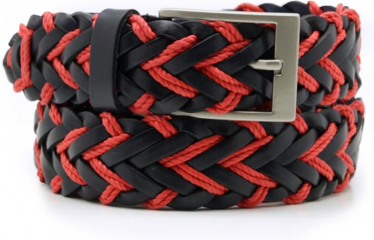 Czerwony pasek męski pleciony ze skóry i sznurka z klasyczną klamrą