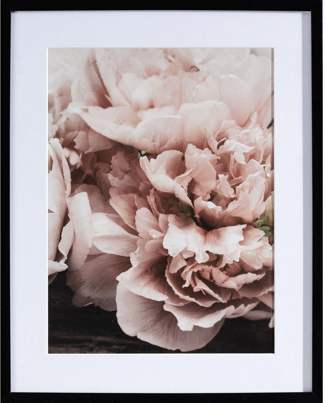 Subtelny obraz w w ramie w odcieniach zgaszonego różu. Zachwycająca fotografia delikatnych piwonii oprawiona została w eleganckie passe partout i czarną ramę, tworząc niezwykle szykowną dekorację. Wspaniale zaprezentuje się powieszona w salonie lub sypialni, gdzie wniesie świeżość i blask. Doskonale wygląda w komplecie z drugim obrazem z tej samej serii, tworząc spójną galerię, która z pewnością zwróci uwagę odwiedzających Cię gości. Dobry pomysł na stylowy prezent. Wymiary: szer. 40cm, gł. 1cm, wys. 50cm. Materiał: tworzywo sztuczne/ płyta mdf/ szkło.