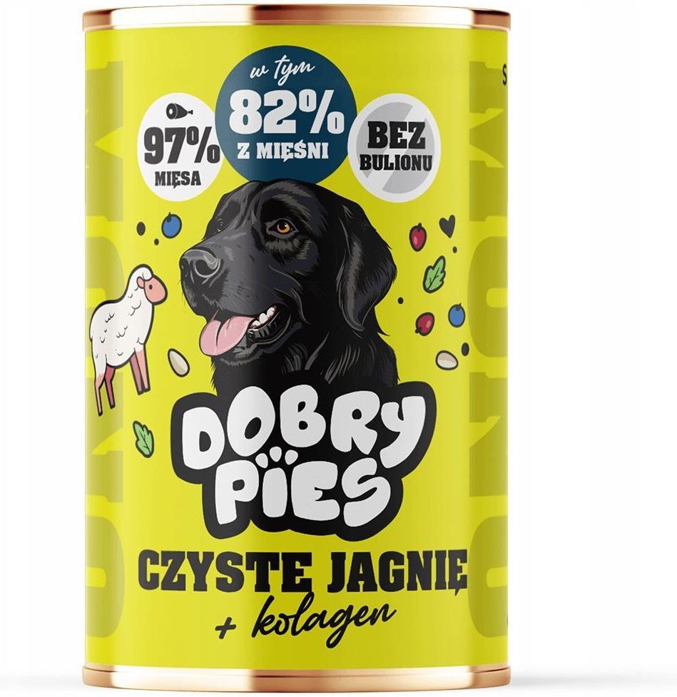 Dobry Pies Mono Jagnięcina Kolagen 400g Producent: Dobry Pies Rasa psa: Karma uniwersalna Wiek psa: Dorosłe / Adult Smak: Jagnięcina Cechy dodatkowe: Bezzbożowa|Monoproteinowa Wielkość opakowania : 400g Dobry Pies Mono Jagnięcina Kolagen 400g Dobry Pies Mono Jagnięcina Kolagen 400g - lekkostrawny, naturalny i dobrze przyswajalny posiłek na bazie jagnięciny. Jagnięcina jest ceniona za delikatność, wysoką wartość odżywczą i doskonałą tolerancję przez psy o wrażliwym układzie pokarmowym. Receptura wzbogacona owocami i roślinnymi dodatkami dostarcza błonnika, witamin oraz antyoksydantów, co wspiera zdrowie, odporność i ogólną kondycję pupila. Skład jest krótki, przejrzysty i pozbawiony niepotrzebnych dodatków, co sprawia, że karma jest naturalna i odpowiednia nawet dla alergików. Hydrolizowany kolagen dodatkowo wspomaga stawy, a odpowiednio dobrane minerały zapewniają energię każdego dnia. Kluczowe cechy produktu Jedno źródło białka - jagnięcina, idealna opcja dla psów z nietolerancjami pokarmowymi i wrażliwym trawieniem Wysoka zawartość mięsa - 97% , tym 80% mięsa mięśniowego, co gwarantuje świetną przyswajalność i wysoką wartość odżywczą Hydrolizowany kolagen - wspiera zdrowie stawów, poprawia kondycję skóry i wpływa na piękny wygląd sierści Borówki i jagody goji - naturalne źródła witamin, błonnika i antyoksydantów - wspierają odporność, procesy trawienne oraz pracę narządów wewnętrznych Pestki dyni i natka pietruszki - wzmacniają układ trawienny i sercowo-naczyniowy, wykazują działanie przeciwzapalne i antybakteryjne Naturalny skład bez zbóż i sztucznych dodatków - bez konserwantów, barwników i zbędnych wypełniaczy Skład: 97% jagnięcina (80% mięso mięśniowe, 9% wątroba, 8% płuca), 1% borówki, 1% witaminy i minerały, 0,5% jagody goji, 0,3% pestki dyni, 0,2% nać pietruszki. Dodatki dietetyczne (na 1 kg): Witamina A – 2670 j.m., Witamina D – 290 j.m., Witamina E – 50 mg, Cynk (jednowodny siarczan cynku) – 42 mg, Mangan (monohydrat) – 1,5 mg, Miedź (siarczan miedzi) – 1,3 mg, Jod (jodan wapnia) – 0,83 mg, Hydrolizowany kolagen – 10 000 mg. Składniki analityczne: Białko surowe: 11,8%, Tłuszcz surowy: 6,3%, Wilgotność: 77%, Popiół surowy: 2%, Włókno surowe: 0,7%, Węglowodany: 2,2%, Wapń: 0,3%, Fosfor: 0,2%. Energia metaboliczna: 113,86 kcal / 100 g