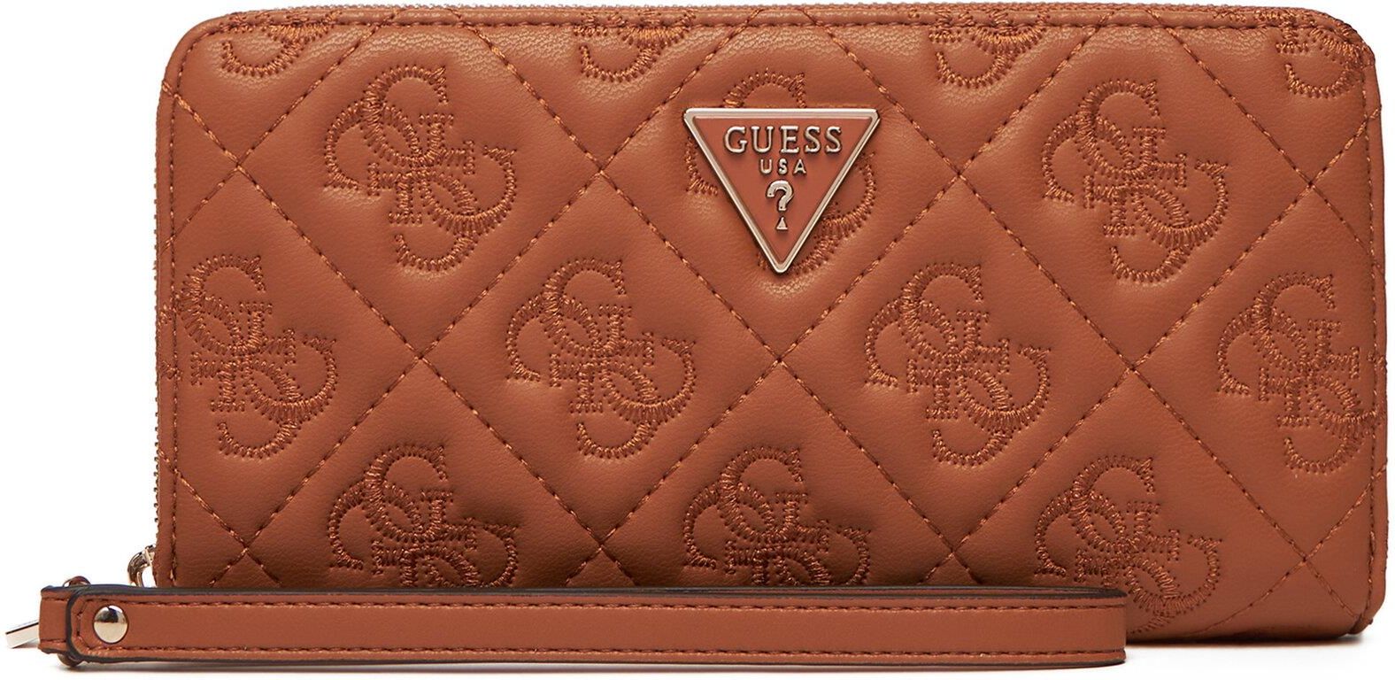 GUESS Brązowy portfel damski Adelasia Brązowy damski portfel ze skóry ekologicznej marki Guess. Zamykany na zamek, wewnątrz zasuwana kieszeń na bilon, dwie przegrody, 12 miejsc na karty, dwie wsuwane kieszenie i dodatkowa kieszeń na zamek z tyłu. Wszystkie produkty z oferty OUTFIT-butik są …