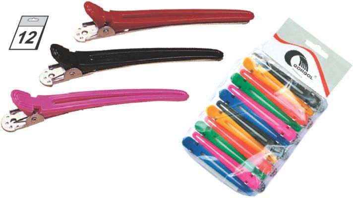 Klipsy do włosów marki Gorgol. Zestaw składa się z 12 sztuk różnokolorowych spinek. Doskonale sprawdzą się zarówno w zaciszu domowym, a także w profesjonalnym salonie fryzjerskim czy makijażowym. Doskonale poradzą sobie zarówno z cienkimi jak i grubymi pasmami różnej długości. Wykonane zostały z wytrzymałego metalu oraz kolorowego, syntetycznego tworzywa. Posiadają dobrze wyprofilowany kształt, tak by po aplikacji dobrze dopasowały się do kształtu głowy. Doskonale przytrzymają pasma w pożądanej pozycji bez obaw o ich uszkodzenie lub odkształcenie. Klipsy idealnie sprawdzą się podczas pokazów makijażu, czy w salonach kosmetycznych, kiedy klientka ma już zrobioną fryzurę i czeka na swój make-up, a także w domu na co dzień.Klipsy Gorgol. Są lekkie i komfortowe. Dobrze przytrzymują pasma. Nie odkształcają i nie niszczą włosów.