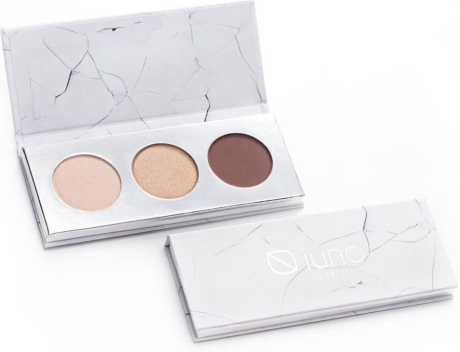 PALETA CIENI DO POWIEK IUNO - CIENIE W ODCIENIU NUDE - NA CO DZIEŃ I NA IMPREZĘMakijaż oczu to świetny sposób na podkreślenie ich koloru. Skupia na nich uwagę i dodaje charakteru całej twarzy. Jeżeli poszukujesz czegoś dyskretnego, ale nadal z charakterem, sięgnij po tę paletę. Z tym kosmetykiem wyczarujesz idealny makijaż, podkreślający wszystkie atuty i tuszujący niedoskonałości. Ta paleta cieni IUNO Cosmetics podbije serca zarówno miłośniczek minimalizmu, jak i odważnych, tajemniczych smokey eyes.Paleta wegańskich cieni IUNO – inspirowana tonami ziemiperfekcyjna paletadelikatna konsystencjadodaje charakteruPaleta cieni IUNO składa się z trzech kolorów. Pierwszy z nich to przepiękny beż o satynowym wykończeniu. Nałożony pod łuk brwiowy optycznie powiększy oko. Kolejny kolor w naszej palecie cieni do powiek to karmelowy odcień z efektem błysku. Możesz używać go solo lub w połączeniu z innymi kolorami. Ostatni w naszej palecie naturalnych cieni jest kolor gorzkiej czekolady. Idealnie nadaje się do nałożenia w zagłębieniu powieki lub jej zewnętrznym kąciku. Możesz tym odcieniem zastąpić także kredkę do oczu. Brązowy odcień pięknie podkreśli naturalną linię rzęs.Paleta cieni do powiek IUNO została zamknięta w pięknej kasetce z ekologicznego papieru. Do jej produkcji wykorzystaliśmy produkty pochodzenia naturalnego. Paleta cieni do powiek IUNO Cosmetics jest w pełni wegańska oraz cruelty free. Bazują na naturalnej formule, w której nie znajdują się żadne barwniki pochodzenia zwierzęcego. Dzięki zawartości hydrolatu oczaru wirginijskiego, łagodzą wszelkie podrażnienia i absorbują sebum. Palety do cieni IUNO są wegańskie, trwałe, a przede wszystkim uniwersalne.bazę pudrową stanowi talk i mika hydrolat oczaru wirginijskiegołagodzi podrażnienianaturalna formuła