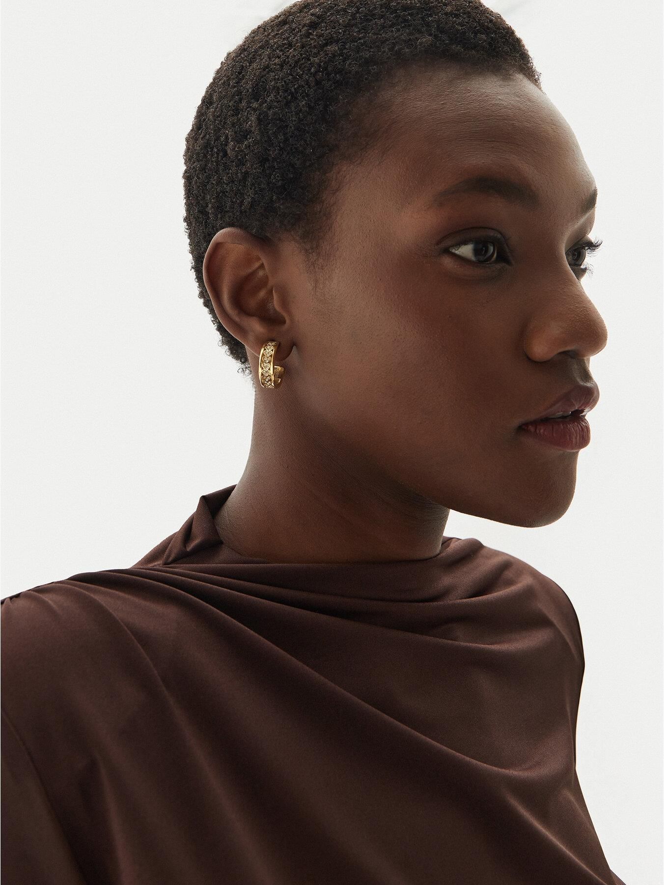 Kolczyki Guess Mon Amour Rząd Serc z cyrkonii sztyft stal pozłacana Te urocze kolczyki to doskonały dodatek dla eleganckiej kobiety. Wykonane z antyalergicznej stali szlachetnej, zapewniają trwałość i bezpieczeństwo noszenia. Dodatkowo, ozdobione cyrkoniami, które dodają im subtelnej elegancji i blasku. Ich złoty kolor nadaje im wyjątkowego uroku i stylu, doskonale komponując się z różnymi stylizacjami. Kolczyki Guess model JUBE04603JWYGT/U są idealnym wyborem na wiele okazji, dodając charakteru i elegancji noszącej. Marka : Guess Model: JUBE04603JWYGT/U Kolor: Złoty Materiał: Antyalergiczna stal szlachetna, cyrkonie Rozmiar: 1,7 cm Wyjątkowy i zaskakujący design Starannie dopracowany design i wyjątkowe wzory sprawiają, że biżuteria Guess idealnie wpisze się w trendy modowe, dopasowując się do każdej okazji. Szeroki wybór dostępnych wzorów W ofercie biżuterii Guess znajdziecie zarówno wyzywające i bezkompromisowe wzory, jak i te bardziej stonowane, stworzone z myślą o kobietach doceniających subtelne i delikatne dodatki. Wszystkie wyroby tej renomowanej marki to prawdziwa gratka dla miłośniczek stylowej biżuterii. Kupując biżuterię Guess w naszym sklepie masz pewność, że otrzymujesz w 100% oryginalny produkt, który cechuje wysoka jakość wykonania. W zestawie otrzymujesz: Oryginalna torebka GUESS Firmowe pudełko GUESS Certyfikat Autentyczności