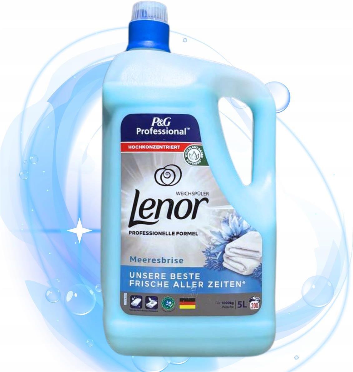LENOR Aprilfrisch Professionalle Płyn do płukania tkanin morska bryza 200-400płukań 4L przeznaczenie automatyczne i ręczne do białego i koloru GORĄCO POLECAMY SPRAWDZIĆ NASZE PRODUKTY POD ZAKŁADKĄ "Wszystkie Przedmioty Sprzedającego" ZNAJDZIESZ TAM MNÓSTWO OFERT KAPSUŁEK I PROSZKÓW DO PRANIA W BARDZO NISKICH CENACH nasze oferty z środkami piorącymi-myjącymi-dezynfekujące czyli chemia gospodarcza dla domu i firm jest sprowadzana z Niemiec w każdej naszej ofercie producenci są oznaczeni kodem kreskowym gdzie był produkowany poszczególny produkt Lenor Professional to wysokiej jakości płyn do płukania tkanin o zapachu lawendy, dostępny w wydajnym opakowaniu o pojemności 4 litrów. Ten produkt doskonale nadaje się do dodawania wyjątkowego aromatu i miękkości Twoim ubraniom i tekstyliom Dzięki niebiańskiej miękkości Twoje ubrania będą przyjemniejsze w dotyku, a także łatwiejsze w prasowaniu. Delikatny i harmonijny zapach sprawi, że Twoje pranie będzie nie tylko miękkie, ale także pachnące przez cały tydzień. Co więcej, nasz płyn do płukania tkanin jest testowany dermatologicznie, Butelka została wykonana z tworzyw sztucznych pochodzących w 100% z recyklingu i może być ponownie poddana recyklingowi. Stosuj w połączeniu ze środkiem piorącym Lenor, aby uzyskać doskonałą czystość tkanin i odpowiednio dopasowany zapach. Produkt ten jest prosty w użyciu. Wystarczy dodać odpowiednią ilość płynu do ostatniego cyklu płukania i cieszyć się efektami. Płyn do płukania Lenor Professional 200p 4L to doskonały wybór dla tych, którzy pragną, aby ich tkaniny były zarówno pachnące, jak i miękkie. Ten wydajny płyn do płukania doda luksusu Twojemu praniu i uczyni Twoje ubrania i pościel jeszcze przyjemniejszymi w dotyku. Starcza na 200 prań. Technologia aktywacji zapachu płynu Lenor sprawia iż świeży zapach uwalnia się dopiero podczas używania tkanin. Zapewnia zapach i miękkość nawet w przypadku suszenia w suszarce bębnowej. Zapewnia doskonałą chłonność wody. Pomaga ograniczyć elektryzowanie się tkanin i ułatwia prasowanie. Ergonomiczna butelka z końcówką zapobiegającą kapaniu i zakrętką z miarką ułatwia kontrolę dozowania. Zalecany do profesjonalnego jak i codziennego użytku. Ten wydajny płyn do płukania doda luksusu Twojemu praniu i uczyni Twoje ubrania i pościel jeszcze przyjemniejszymi w dotyku! kraj importu Niemcy kraj przeznaczenia niemcy,francja producent P&G lenor 8700216760331 Właściwości Niebiańska miękkość dla przyjemnego uczucia noszenia Wyczuwalna świeżość Lenor do 1 tygodnia Ubrania są miękkie i wygodne Długotrwała świeżość