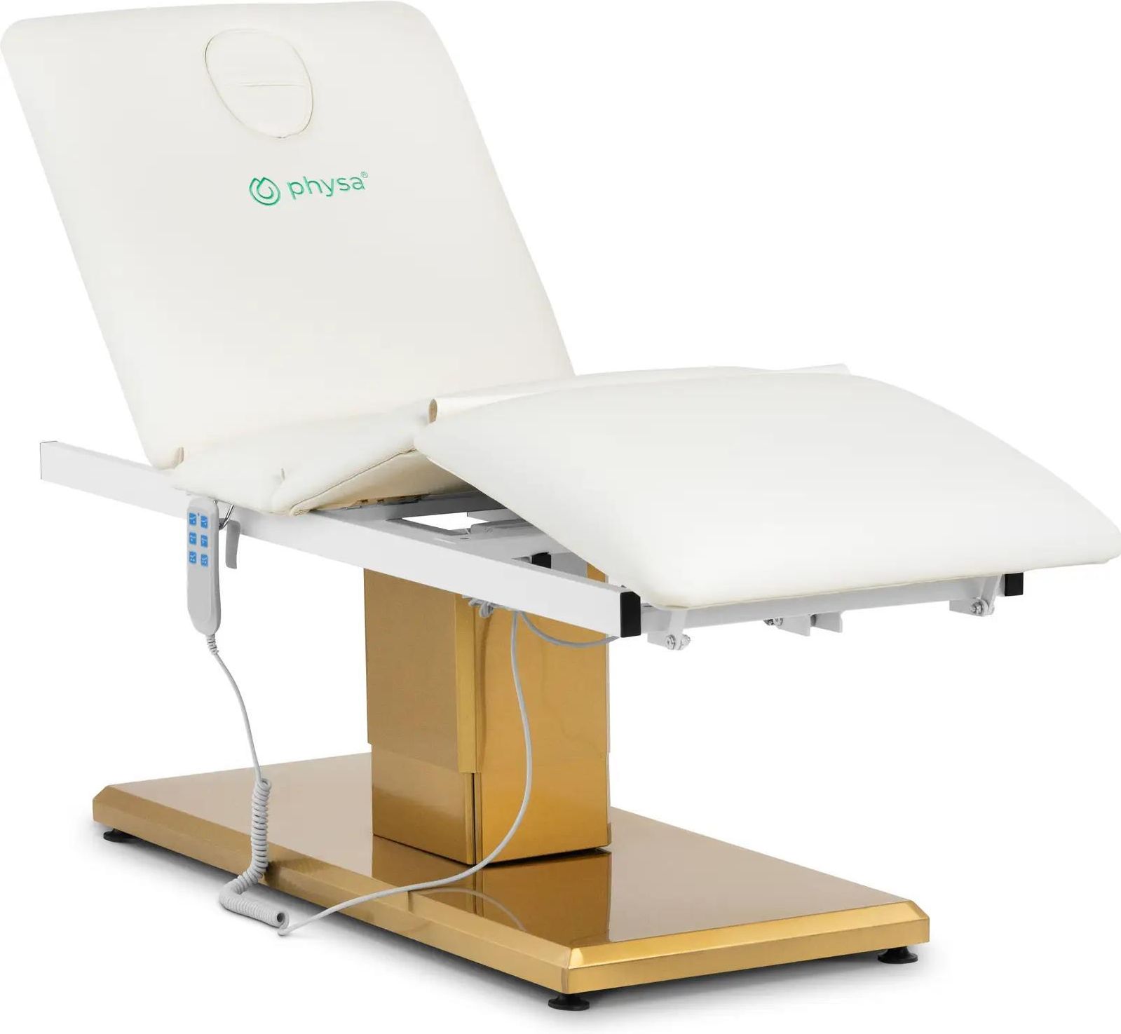 Kod producenta: 10040735Fotel kosmetyczny PHYSA VITERBO zapewnia maksymalny relaks w pozycji leżącej lub siedzącej. Pozwala to na wygodne przeprowadzanie zabiegów kosmetycznych, którymi klienci będą się w pełni cieszyć. Fotel sprawdzi się w studiach stylizacji, tatuażu i piercingu, w obiektach SPA & Wellness, a dzięki wgłębieniu na twarz z wyjmowaną poduszką również jako stół do masażu. Pod względem komfortu i ergonomii fotel wyposażono w liczne funkcje. Mocny silnik umożliwia łatwą obsługę za pomocą przewodowego pilota. Wysokość ustawiana jest w zakresie 530 - 650 mm, kąt podnóżka (0 - 30°) do danego zabiegu i klienta. Miękka tapicerka w połączeniu z najwyższej klasy wodoodpornym i olejoodpornym pokryciem ze skóry syntetycznej, którą można łatwo wyczyścić, zapewnia wysoki komfort i nienaganną higienę. Goście poczują się absolutnie zrelaksowani na grubym materacu. Tę przyjemną atmosferę dopełnia funkcja leżenia. Dzięki przemyślanej konstrukcji, podstawie wykonanej z metalu malowanego proszkowo i wysokiej jakości materiałów łóżko kosmetyczne ma maksymalny udźwig 150 kg. Sprzęt zachwyca niezwykłą trwałością oraz prostym i klasycznym designem. Najważniejsze cechy: - Udźwig 150 kg dzięki solidnej ramie wykonanej z metalu malowanego proszkowo, - Obicie z łatwej w pielęgnacji sztucznej skóry, odpornej na wodę i olej, - Siedzisko fotela kosmetycznego z regulacją wysokości w zakresie 530 - 650 mm, - Gruba wyściółka oraz podłokietniki, zagłówki i wgłębienie na twarz z wyjmowaną poduszką, - Możliwość indywidualnego ustawienia oparcia, podłokietników, podnóżka i zagłówka fotela kosmetycznego. Specyfikacja: - Nr katalogowy - 10040735 - Stan artykułu - Nowy - Model - PHYSA VITERBO - Materiał - Sklejka, Plastik, Pianka, Żelazo, Metal malowany proszkowo - Kolor - Złoty, Biały - Moc [W] - 60-70 - Wymiary podstawy [cm] - 118 x 52 - Wymiary podnóżka [mm] - 630 x 570 - Mechanizm podnoszenia - Silnik - Wymiary siedziska [mm] - 380 x 620 - Wymiary oparcia [mm] - 710 x 630 - Regulacja odchylenia oparcia [°] - 0-45 - Zakres regulacji kąta pochylenia podnóżka [°] - 0 - 30 - Długość nóżek / średnica podstawy [mm] - Ø20 - Pilot - Tak - Regulowane oparcie - Tak - Wymiary (DxSxW) - 190 x 65 x 74 cm - Waga - 63 kg - Wymiary wysyłki (DxSxW) - 194 x 74 x 68 cm - Waga wysyłki - 85 kg Zestaw zawiera: - Fotel kosmetyczny