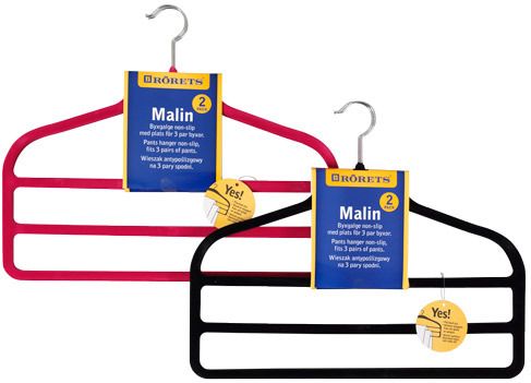 WIESzAK ANTYPOŚL.MALIN NA 3 PARY SPODNI RORETS Komplet 2szt wieszaków na 3 pary spodni każdy. Wieszaki pokryte specjalnym materiałem, który zapobiega zsuwaniu się z nich ubrań. Dostępne w kolorze czarnym i fuksja.
