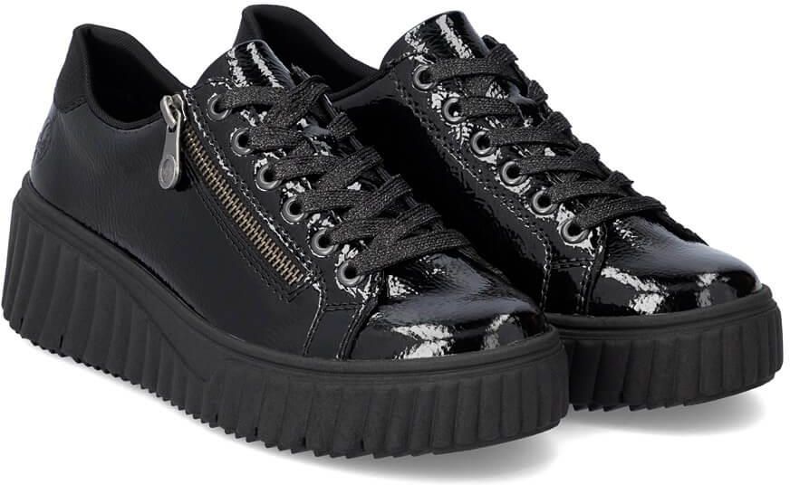 Skórzane lakierowane półbuty damskie na koturnie czarne Rieker N2501-00 Głogów