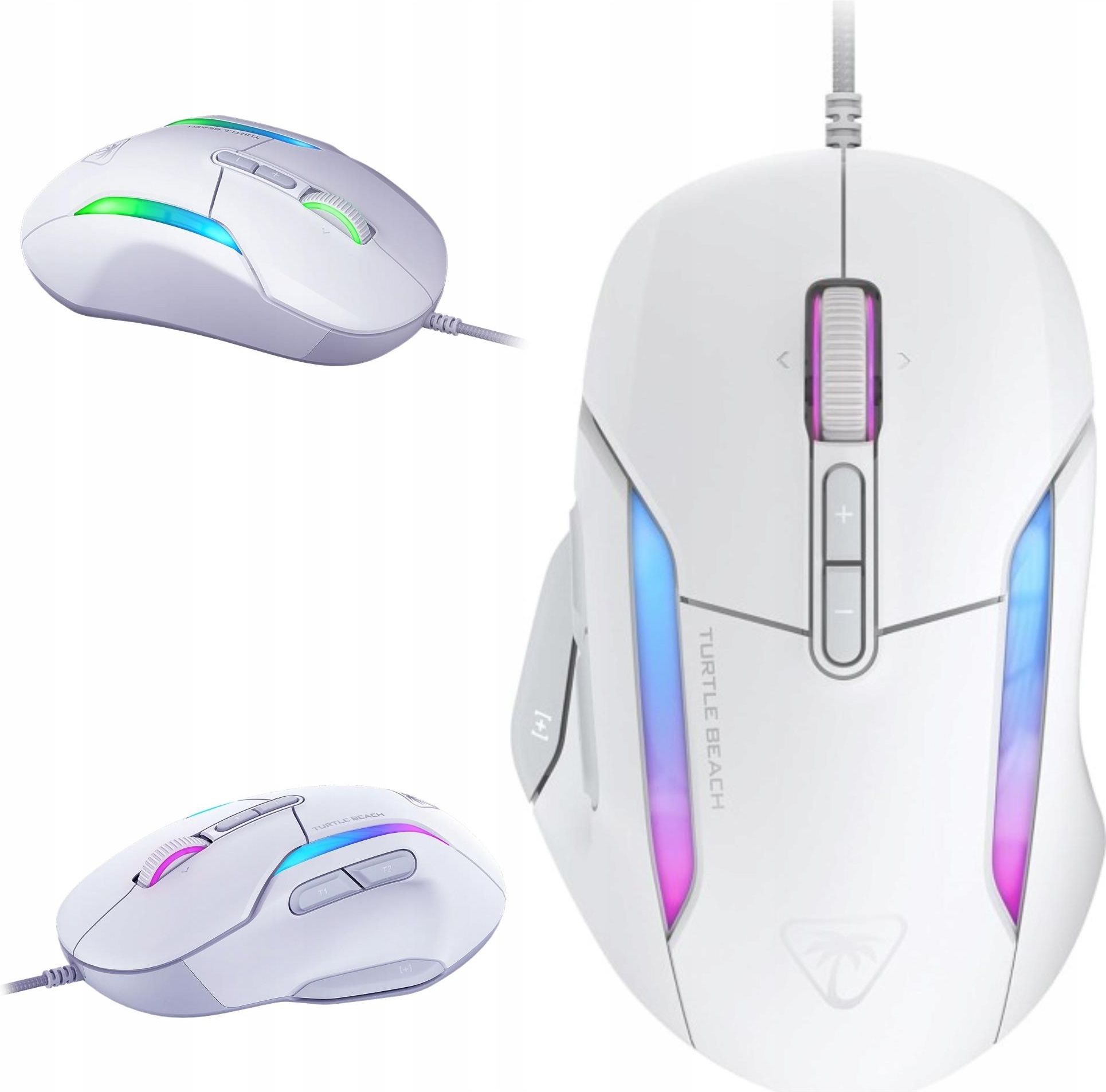 Myszka bezprzewodowa Turtle Beach Kone II Mysz gamingowa Kone II zapewnia najwyższy komfort i wydajność dzięki doskonałej ergonomii, dopasowanej do każdego stylu chwytu. Oferuje 23 programowalne funkcje, precyzyjny sensor optyczny 26K DPI oraz dotykowe, satysfakcjonujące kliknięcia zasilane przełącznikami optycznymi – stworzona, by wynieść Twoją rozgrywkę na wyższy poziom. Cechy produktu Ergonomiczny kształt dla średnich i większych dłoni oraz wszystkich rodzajów uchwytów Wieloprzyciskowa konstrukcja obsługująca 23 programowalne funkcje Wielofunkcyjne, 4D kółko przewijania z funkcją przechylania Dynamiczna precyzja dzięki optycznemu sensorowi o rozdzielczości 26 000 DPI i szybkości 650 IPS (16,5 m/s) Przyciski z wstępnym napięciem dla szybkich i satysfakcjonujących kliknięć Przełącznik TITAN Switch Optical zapewniający dotykowe wrażenia i optyczną prędkość Długowieczność przełączników – żywotność do 100 milionów kliknięć Ślizgacze z czystego, termicznie utwardzanego PTFE dla płynnych ruchów Trzy strefy programowalnego podświetlenia AIMO RGB Lekki, pleciony kabel PhantomFlex™ USB-A bez oporu podczas przeciągania Kompatybilność z NVIDIA® Reflex Zdominuj rozgrywkę z ergonomiczną myszką gamingową Turtle Beach® Kone™ II Podnieś swój poziom gry dzięki przewodowej myszce Turtle Beach® Kone™ II, zaprojektowanej z myślą o precyzji, wygodzie i pełnej kontroli. Ergonomiczny kształt, idealny dla średnich i większych dłoni, doskonale dopasowuje się do każdego stylu chwytu, a dodatkowe taśmy antypoślizgowe zapewniają pewność nawet w najbardziej emocjonujących momentach. Odkryj możliwości technologii Easy-Shift[+]™, która zamienia 7 przycisków i dotykowe kółko 4D w aż 23 w pełni konfigurowalne funkcje – wszystko w zasięgu Twojej dłoni. Każde kliknięcie jest szybkie i satysfakcjonujące dzięki przełącznikom optycznym TITAN, które wytrzymują do 100 milionów naciśnięć. Ciesz się nieskazitelną precyzją dzięki optycznemu sensorowi o rozdzielczości 26 000 DPI i prędkości 650 IPS, a ultra-gładkie ślizgacze z czystego, termicznie utwardzanego PTFE gwarantują płynność ruchów. Spersonalizuj swoją rozgrywkę dzięki trzem strefom podświetlenia AIMO™ RGB i graj bez ograniczeń dzięki lekkiemu, plecionemu kablowi PhantomFlex™. Dodatkowo kompatybilność z NVIDIA® Reflex zapewnia wyższą precyzję podczas gry. Ergonomiczny projekt, który działa na Twoją korzyść Ponad dekada doświadczenia w inżynierii ergonomicznej zaowocowała kształtem idealnym dla średnich i większych dłoni, bez względu na Twój styl chwytu – pazur, pełna dłoń czy opuszek palca. Pełna kontrola Technologia Easy-Shift[+]™ podwaja funkcje 7 przycisków i kółka przewijania 4D z opcją przechylenia, umożliwiając skonfigurowanie aż 23 różnych akcji. Kółko przewijania 4D Precyzyjne przewijanie z wyczuwalnym oporem dla większej dokładności. Kółko pozwala także na przechylanie w lewo i prawo, dając dostęp do dwóch w pełni programowalnych funkcji. Przełączniki TITAN Optical Przełączniki TITAN Optical oferują wyczuwalne, szybkie i niezawodne kliknięcia. Dzięki żywotności do 100 milionów kliknięć oraz systemowi wstępnego napięcia masz gwarancję błyskawicznej reakcji i większej precyzji. Sensor optyczny Owl-Eye Ciesz się płynnym i precyzyjnym śledzeniem dzięki ulepszonemu sensorowi Owl-Eye™, oferującemu aż 26 000 DPI i prędkość 650 IPS (16,5 m/s). Dedykowane przyciski DPI umożliwiają szybką zmianę rozdzielczości bez potrzeby użycia oprogramowania. Ślizgacze z czystego PTFE Wytrzymałe, termicznie utwardzane ślizgacze z czystego PTFE zapewniają niezwykle płynne ruchy myszy od razu po wyjęciu z opakowania. Wielostrefowe podświetlenie RGB Mysz Kone II oferuje trzy w pełni programowalne strefy podświetlenia RGB. Dzięki aplikacji Swarm™ II możesz dostosować efekty świetlne, w tym zsynchronizowane oświetlenie AIMO™. Przewód PhantomFlex Elastyczny i lekki, pleciony przewód PhantomFlex™ USB-A niemal znika podczas gry, zapewniając pełną swobodę ruchu. Kompatybilność z NVIDIA® Reflex Zwiększ swoją precyzję dzięki NVIDIA Reflex. W połączeniu z kartami graficznymi GeForce RTX™ i monitorami NVIDIA G-SYNC®, mysz Kone II osiąga opóźnienia poniżej 25 ms, co pozwala szybciej namierzać cele i precyzyjniej celować. Dane techniczne Ogólne Przełącznik: TITAN Optical Żywotność: 100 milionów kliknięć Pamięć wbudowana: 5 profili Kabel: PhantomFlex™ USB-A, długość 1,8 m / 5,9 ft Częstotliwość raportowania USB: 1000 Hz Kompatybilność: NVIDIA Reflex Oprogramowanie: Swarm II Sensor Sensor optyczny: Owl-Eye 26K Minimalne DPI: 50 Maksymalne DPI: 26 000 Regulowana wysokość odczytu (lift-off distance) Przyspieszenie: 50 g Prędkość śledzenia: 650 IPS (16,5 m/s) Wymiary Długość: 130,2 mm Wysokość: 43,6 mm Szerokość: 82,6 mm Waga: 90 g Kompatybilność Windows® 10 lub nowszy (wymagane do obsługi oprogramowania) Port USB 2.0 (lub nowszy) Połączenie z internetem (do pobrania sterowników) W zestawie Turtle Beach® Kone™ II Taśmy antypoślizgowe Instrukcja szybkiego startu