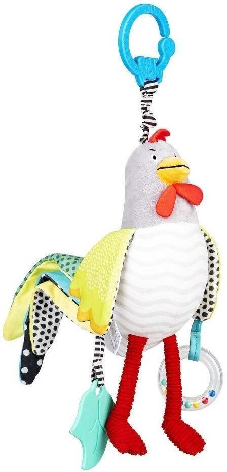 MASKOTKA SENSORYCZNA ZAWIESZKA KOGUT JUREK 82820 DUMEL Kukuryku! Jurek zaprasza do zabawy w odkrywanie sensorycznych niespodzianek! Zabawny kogucik uszyty został z materiałów o zróżnicowanych wzorach, kolorach i fakturach, dzięki czemu pomaga rozwijać zdolności poznawcze dziecka. Skrzydełka zabawki uroczo szeleszczą, a zdobią je gryzaczek w kształcie listka oraz kółko wypełnione grzechoczącymi koralikami. Praktyczna zawieszka, w która wyposażona została zabawka, pozwala przymocować ją w wybranym miejscu. Produkt przeznaczony jest dla dzieci od dnia narodzin. Cechy produktu: zróżnicowane faktury materiałów; szeleszczące skrzydełka; grzechotka; miękki gryzak (liść); zawieszka; Wiek: 0 m+ Wymiary: 186x238 mm