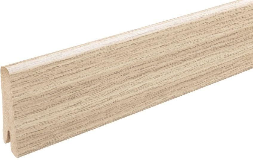 LISTWA MDF EGGER L368 to uniwersalna i utrzymana w ciepłym, naturalnym kolorze listwa przypodłogowa drewnopodobna marki Egger, której wymiary sięgają 240 cm długości, 1,7 cm szerokości oraz 6 cm wysokości. Produkt z okleiną dopasowaną do wzoru panela. Montaż listwy przypodłogowej odbywa się przy użyciu kleju lub klamer. Wykonana z materiału o wysokich właściwościach odpornych na uszkodzenia mechaniczne – takie jak zarysowania i pęknięcia. Listwy przypodłogowe MDF zabezpieczają ściany, a także wypełniają szczeliny dylatacyjne, dzięki czemu podłoga pozostaje gładka i równa. Produkt dostępny w sklepie Komfort w różnych kolorach oraz wzorach pozwala estetycznie ukryć kable i przewody.