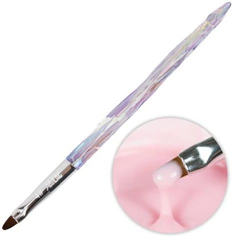 Pędzelek do żelu unicorn owalny AlleLac Nr 4 Wyjątkowy pędzelek wykonany z najwyższej jakości włosia nylonowego przeznaczony do wykorzystania w technice żelowej. Idealny do przedłużania i budowania na formie i tipsie oraz na naturalnej płytce paznokcia. Dzięki doskonałej sprężystości włosia usprawnia pracę, a jego kształt zapewnia idealne i równomierne rozłożenie żelu nawet w bardzo bliskiej odległości od skórek. Doskonale wyprofilowana rękojeść zapewnia natomiast komfort pracy. Wyjątkowy design rękojeści niespotykany nigdzie indziej zapewni Ci fantastyczne wrażenia wizualne. Kolor pędzelka przyciągnie każde spojrzenie, a mieniący się efekt unicorn to gwarancja blasku za każdym razem kiedy będziesz używać pędzla. Twórz perfekcyjną budowę żelową i zachwycaj kunsztownymi stylizacjami. Jak dobrać idealną wielkość włosia do pracy nad budową? Wielkość pędzla to kwestia bardzo indywidualna. Wybierz pędzel o rozmiarze 6, jeśli nie jesteś początkująca i dobrze czujesz się w technice żelowej. Rozmiar 4 i 2 sprawdzi się w przypadku mniej zaawansowanych osób lub wtedy, kiedy potrzebujesz bardziej precyzyjnie pracować, np. przy skórkach. Włosie: nylonowe, bardzo dobrej jakości Długość włosia: 7mm Rozmiar: 4