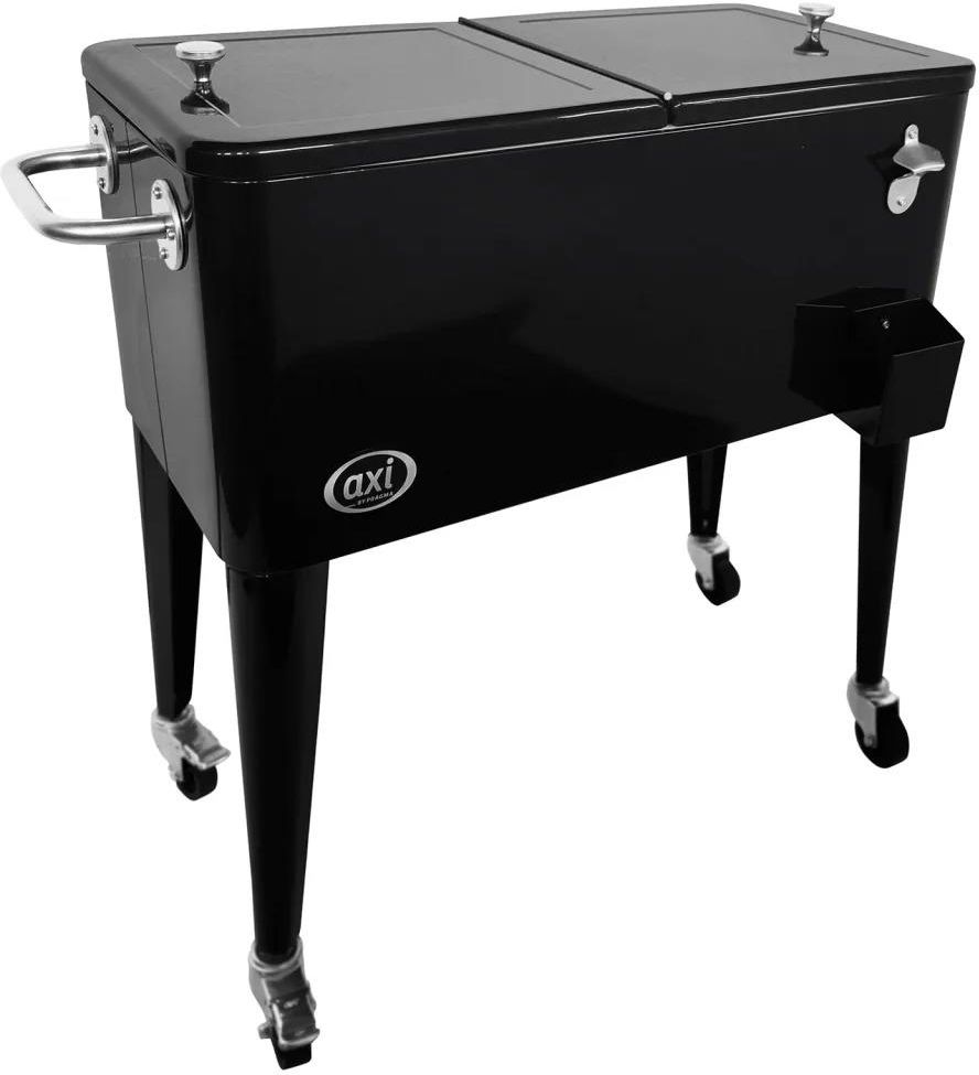 Ta 76-litrowa, czarna lodówka marki AXI jest bardzo przydatna oraz stylowa za sprawą klimatu retro. Zewnętrzna strona szafki z pokrywą została wykonana z czarnego polipropylenu, zaś wewnętrzna z białego polipropylenu oraz pianki PU. Ten wózek na napoje i jedzenie zawiera 4 skrętne kółka, z których 2 mają hamulce zapewniające stabilność. Pokrywę można otworzyć z dwóch stron lub zdjąć ją całkowicie. Możesz więc bez problemu wyjąć swoje piwo z lewej strony lub białe wino z prawej. Dzięki otwieraczowi przymocowanemu z przodu możesz otworzyć butelkę jednym ruchem ręki. Kapsel można wrzucić do pojemnika na kapsle. Maksymalna pojemność chłodziarki wynosi 76 litrów, a maksymalne obciążenie to 55 kg. Zapewnia to wystarczającą ilość miejsca na co najmniej 70 puszek lub 50 butelek. Możesz bez problemu odsunąć lodówkę (za pomocą uchwytu) oraz opróżnić ją po imprezie z wody i lodu za pomocą zaworu spustowego z tyłu. Wystarczy wytrzeć ją ściereczką i będzie gotowa na następny raz! Podczas imprezy lub grillowania możesz szybko przyciągnąć lodówkę wypełnioną lodem i pysznymi napojami. Uwaga: lód ani wkłady chłodzące nie są dołączone. Kolor: czarny Materiał: kute żelazo Wymiary: 92 x 43 x 89 cm (dł. x szer. x wys.) Idealnie sprawdzi się w pomieszczeniu lub ogrodzie Zachowuje niską temperaturę napojów do 36 h Metal na zewnątrz pomalowany proszkowo na czarno Biały polipropylen w środku z pianką PU Solidny uchwyt 4 skrętne kółka (2 kółka z hamulcami) Zawór spustowy z tyłu Zdejmowana, składana pokrywa Pojemność maksymalna: 76 L (70 puszek lub 50 butelek) Maksymalne obciążenie: 55 kg Prosty montaż Produkt łatwy do przestawiania Zawartość przesyłki: 1 x otwieracz do butelek 1 x pojemnik na kapsle