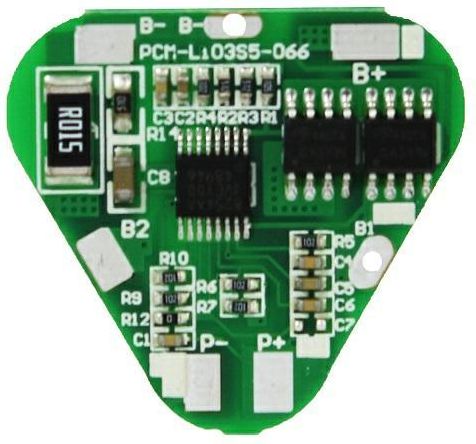 PCM układ zabezpieczenia dla akumulatora Li-Ion 11,1V/ 4A Układ zabezpieczający ogniwa przed przeładowaniem, nadmiernym rozładowaniem i zwarciem. Dedykowany dla pakietu akumulatorów litowo-jonowych (Li-Ion) dla 3 ogniw w szeregu. Dane techniczne: zabezpieczenie przed przeładowaniem pojedynczego ogniwa: 4,35V ± 0,025V zabezpieczenie przed rozładowaniem poniżej 2,4V+/-0,08V maksymalny prąd ciągły rozładowania: 4A zabezpieczenie nadprądowe 5A ± 1A pobór prądu układu kontrolującego: max. 50 μA zabezpieczenie przed zwarciem wymiary: 32 x 30 x 1,95mm Karta Katalogowa