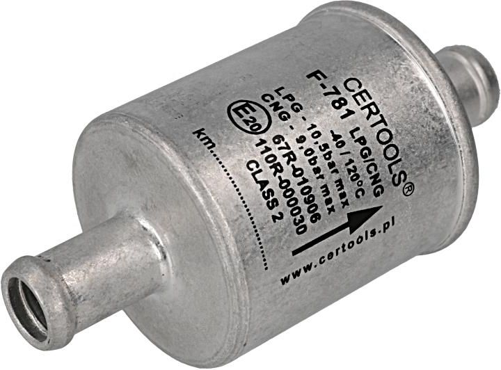 Opis produktu Filtr fazy lotnej CERTOOLS - F-781 14/14 mm (włókno szklane, jednorazowy) - jednorazowy filtr fazy lotnej F-781 firmy CERTOOLS z niewymiennym wkładem. Opis zastosowania Filtr fazy lotnej CERTOOLS - F-781 14/14 mm (włókno szklane, jednorazowy) - filtr fazy lotnej stosowany w części niskociśnieniowej samochodowych instalacji gazowych IV generacji (sekwencyjnych wtrysków gazu w fazie lotnej), montowany pomiędzy reduktorem, parownikiem a czujnikiem ciśnienia i listwą wtryskiwaczy LPG, chroni te elementy przed zanieczyszczeniami mogącymi pojawić się w autogazie. Dane techniczne Filtr fazy lotnej CERTOOLS - F-781 14/14 mm (włókno szklane, jednorazowy): materiał obudowy - stop aluminium, materiał filtracyjny - włókno szklane, długość całkowita - 98 mm, średnica króćców - 14 mm, kierunek przepływu gazu - określony na obudowie, ciśnienie kwalifikacyjne - 450 kPa, zakres zalecanej temperatury pracy - od -40 do 120ᵒC, homologacja na LPG - E20-67R-010906, homologacja na CNG - E20-110R-000030, zalecana wymiana - co około 20 000 km lub zgodnie z zaleceniami producenta. Cechy produktu Typ filtra: jednorazowy Wkład: włókno szklane Wejście: 14 mm Wyjście: 14 mm Obudowa: metal Sposób montażu: na przewodzie Informacje dodatkowe Kod produktu Nagaz: 32.CRT.868 Producent: CERTOOLS Kod producenta: 55-781-01414SK Numer homologacji: E20-67R-010906