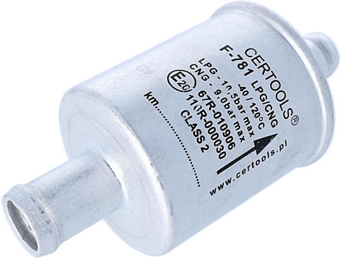 Opis produktu Filtr fazy lotnej CERTOOLS - F-781 16/12 mm (bulpren, jednorazowy) - jednorazowy filtr fazy lotnej F-781 firmy CERTOOLS z niewymiennym wkładem. Opis zastosowania Filtr fazy lotnej CERTOOLS - F-781 16/12 mm (bulpren, jednorazowy) - filtr fazy lotnej stosowany w części niskociśnieniowej samochodowych instalacji gazowych IV generacji (sekwencyjnych wtrysków gazu w fazie lotnej). Montowany pomiędzy reduktorem, parownikiem a listwą wtryskiwaczy gazowych zabezpiecza ją przed zanieczyszczeniami mogacymi pojawić się w autogazie. Dane techniczne Filtr fazy lotnej CERTOOLS - F-781 16/12 mm (bulpren, jednorazowy): typ filtra - jednorazowy, materiał obudowy - stop aluminium, długość całkowita - 98 mm, średnica króćca wejściowego gazu - 16 mm, średnica króćca wyjściowego gazu - 12 mm, materiał filtracyjny - bulpren, kierunek przepływu gazu - określony na obudowie, ciśnienie kwalifikacyjne - 450 kPa, zakres zalecanej temperatury pracy - od -40 do 120ᵒC. homologacja na LPG - E20-67R-010906, homologacja na CNG - E20-110R-000030, zalecana wymiana - co 15 000 do 20 000 km. Cechy produktu Typ filtra: jednorazowy Wkład: bulpren Wejście: 16 mm Wyjście: 12 mm Obudowa: metal Sposób montażu: na przewodzie Informacje dodatkowe Kod produktu Nagaz: 32.CRT.775 Producent: CERTOOLS Kod producenta: 55-781-01612BUL Numer homologacji: E20-67R-010906