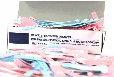 Opaska identyfikacyjna dla noworodków wykonane została z delikatnego tworzywa nie powodującego uczuleń ani odparzeń. Zapinana na zatrzask. Posiada 4 pola do wypełnienia (nazwisko, łóżko, płeć, data) Wymiary długość całkowita: 17 cm Kolor: różowy Opakowanie: 100 sztuk Wyrób medyczny, posiada znak CE. Producent: Zarys