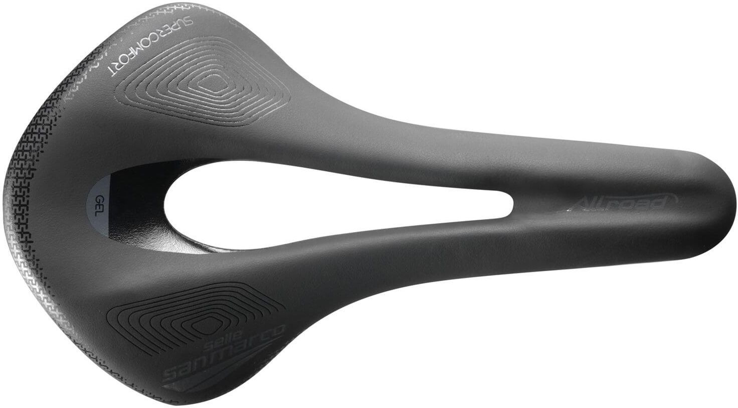 San Marco Allroad Racing Supercomfort to jedno z najlepszych siodełek w ofercie włoskiego producenta. Model pochodzi z serii stworzonej z myślą o rowerach gravelowych, które w trudniejszym terenie sprawdzają się równie dobrze, jak na asfalcie. Zastosowano w niej wiele rozwiązań poprawiających komfort podróży poza utwardzonymi drogami. Natomiast wersja Supercomfort zapewnia najlepsze tłumienie wstrząsów i drgań na wyboistych nawierzchniach, co dodatkowo poprawia możliwości tego siodełka w najtrudniejszych warunkach. Jeżeli szukasz produktu, który zdecydowanie poprawi komfort codziennych treningów lub podróży, to San Marco Allroad Racing Supercomfort będzie optymalnym wyborem. Za wyjątkowe parametry tego modelu odpowiadają 3 elementy: Smukły nosek zapewnia pełną swobodę pedałowania, bez dyskomfortu powodowanego ocieraniem skóry o krawędzie siodełka. Poszerzony tył gwarantuje stabilne wsparcie przy kościach kulszowych, czyli w strefie podpierającej pozycję kolarza. W tym miejscu zastosowano również grubszą wyściółkę, która ma zdolność lepszego dopasowywania się do ciała. Takie rozwiązanie ma kluczowe znaczenie na wygodnego pokonywania dalszych tras. W części środkowej pozostawiono duży otwór centralny, ograniczający ucisk na wrażliwe strefy, a także poprawiający krążenie krwi. Supercomfort jest bardziej miękkim i lepiej absorbującym drgania typem siodełka z serii Allroad. Sprawdzi się on u różnych kolarzy: Początkujących lub jeżdżących rekreacyjnie, rzadko spędzającym w siodełku dłużej niż 2 godziny, dlatego nieprzyzwyczajonym do twardszych wyściółek. Jeżdżącym bardzo dużo, często powyżej 5-6 godzin, czyli wystawiającym tkanki na długotrwały nacisk, który może prowadzić do przeciążeń. Podróżującym po niezwykle wyboistych trasach rowerem bez amortyzacji, dlatego potrzebującym siodełka lepiej pochłaniającej wstrząsy. Zastosowane technologie: Biofoam – pianka dopasowująca się do ruchów miednicy. Nylon wzmocniony włóknem węglowym – korpus z lekkiego i trwałego materiału. STEALTH XSILITE – pręty z lekkiego oraz wytrzymałego materiału, mieszanki krzemu, tytanu i karbonu. Microfeel – zewnętrzne poszycie z przyjemnego w dotyku tworzywa sztucznego.