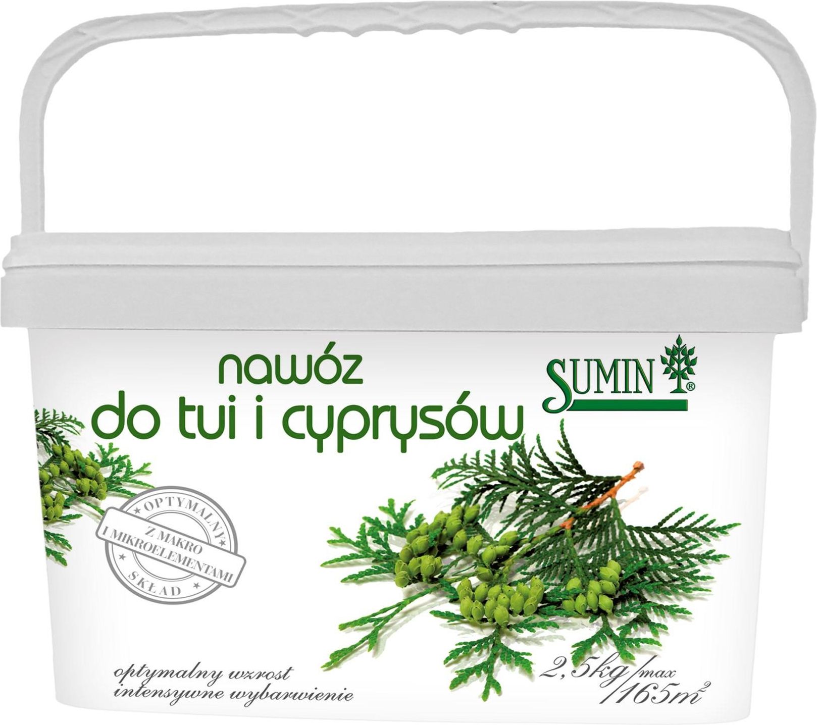 Nawóz do tui i cyprysów Sumin 2,5 kg Nawóz do tui i cyprysów Sumin 2,5 kg Nawóz do tui i cyprysów odpowiednio dobrane formy azotu i fosforu oraz szybko przyswajalny magnez decydują o prawidłowym, rozłożonym w czasie działaniu nawozu i skutecznym pobieraniu składników pokarmowych przez rośliny. …
