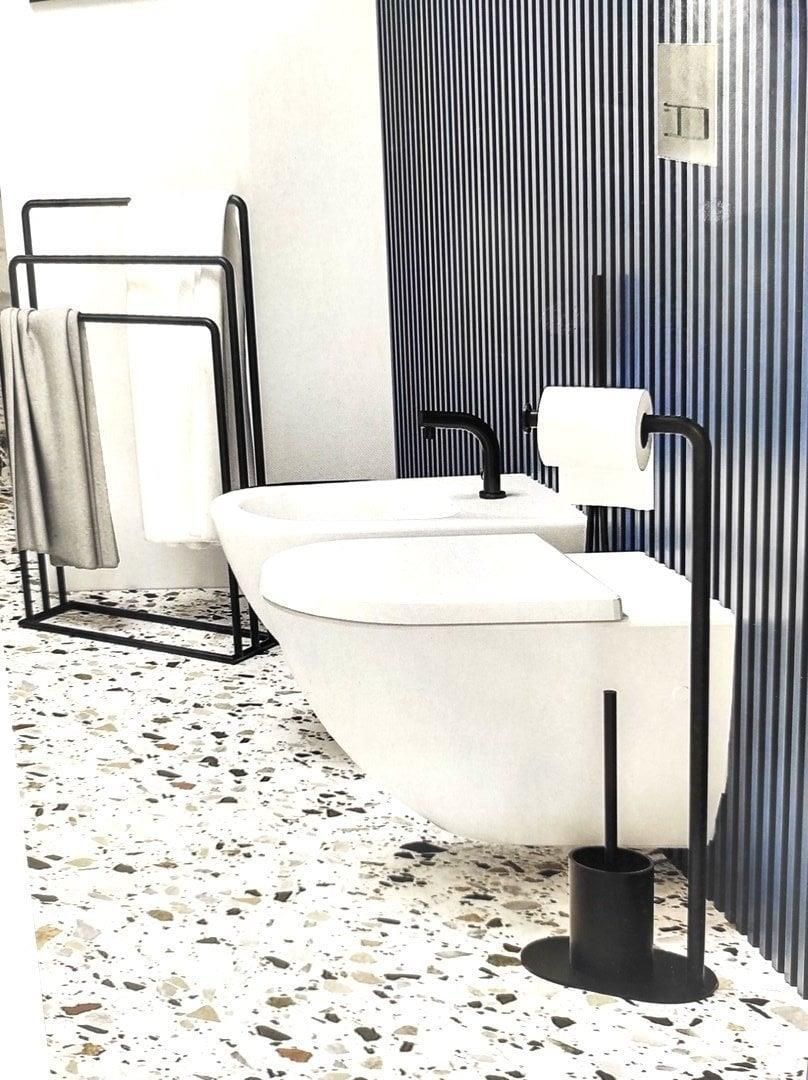 NERO STOJAK WC NA PAPIER CZARNY MATOWY Elegancki i praktyczny, wolnostojący stojak na szczotkę WC z uchwytem na papier toaletowy. Wygodna wysokość, łatwy w utrzymaniu czystości. Od spodu nóżki nie rysujące powierzchni. Dane techniczne Kolor: Czarny Materiał: Stal nierdzewna Pojemnik: plastik …