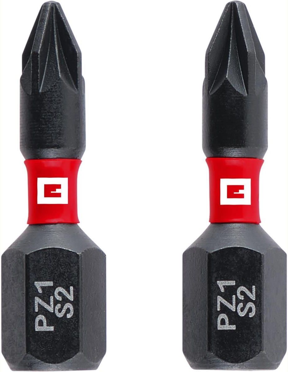 Zestaw dwóch wytrzymałych bitów skrętnych PZ1 S2 o długości 25 mm, wykonanych z wysokiej jakości stali S2, gwarantujących trwałość i niezawodność podczas pracy.