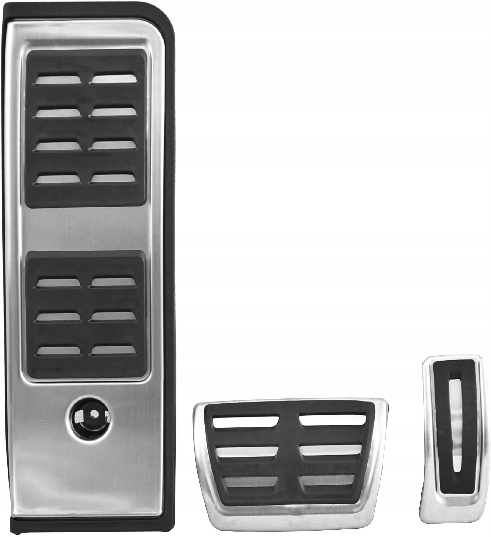 NAKŁADKI NA PEDAŁY AUDI A5 II F5 S-tronic Nakładki na pedały dedykowane do modelu AUDI A5 II F5 S-tronic A5 sedan (F53, F5P) 2016.06 - A5 kabriolet (F57, F5E) 2016.11 - A5 Sportback (F5A, F5F) 2016.06 - Nakładki na pedały zaprojektowane zostały dla zwiększenia komfortu i wygody kierowcy podczas prowadzenia samochodu. Gumowe elementy na nakładkach zapobiegają ślizganiu się podeszwy buta, co umożliwia pewne i bezpieczne operowanie pedałami podczas jazdy. Zastosowanie nakładek pomoże zwiększyć kontrolę nad samochodem podczas codziennego użytkowania w różnych sytuacjach na drodze, dzięki czemu mogą one mieć ogromny wpływ na bezpieczeństwo zarówno kierowcy, jak i pasażerów. Wysoka jakość materiałów zastosowanych do produkcji nakładek sprawia, że są one nie tylko trwałe, ale także prezentują się bardzo dobrze przez cały okres użytkowania. Zastosowanie stali nierdzewnej sprawia, że nakładki wspaniale współgrają z innymi elementami wykończenia samochodu, nadając tym samym elegancki i sportowy charakter samochodu. Zestaw zawiera komplet nakładek widoczny na zdjęciach.