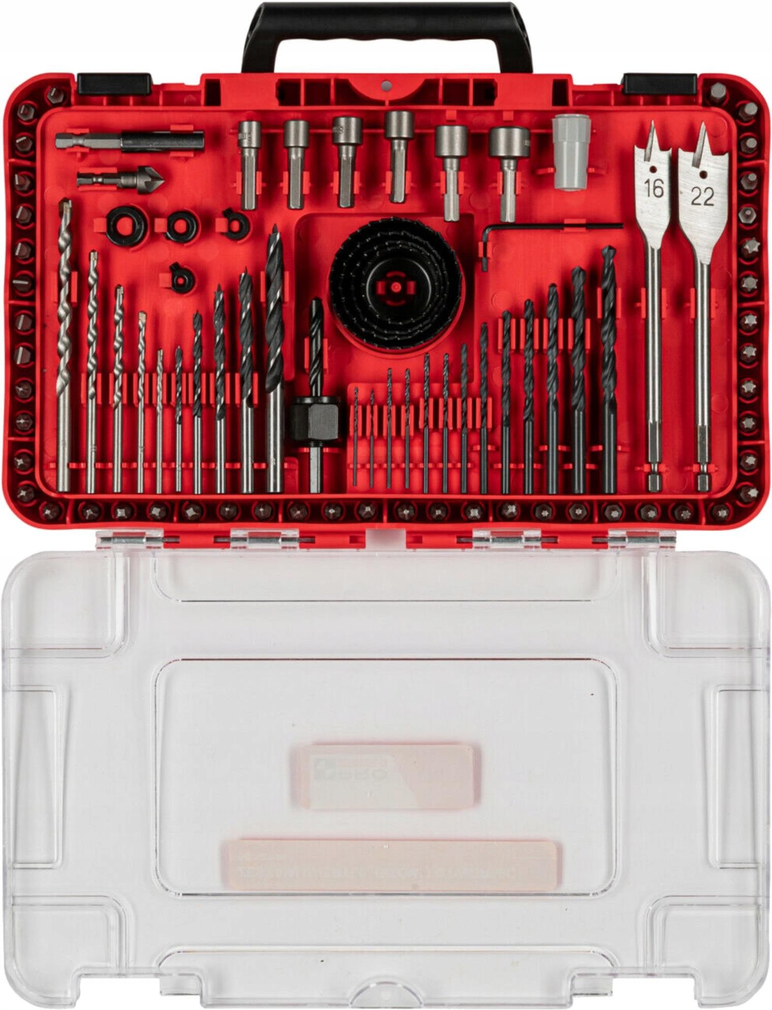ZESTAW BITÓW WIERTEŁ I OTWORNIC 90SZT PRO CECHY Wiertła do metalu wykonane ze stali HSS 4241, Wiertła do drewna i betonu wykonane ze stali węglowej C45, Bity wykonane ze stali chromowo-wanadowej CRV 6150, Otwornice do drewna ze stali a3, Nasadki wykonane ze stali 40 ACr, Pudełko wykonane z …
