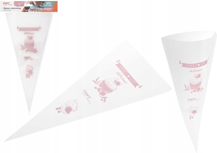 Rękaw cukierniczy 16,5x35 cm, 20 szt. Rękaw cukierniczy do dekoracji ciast, babeczek i tortów – 20 szt. (16,5 x 35 cm)Nadaj swoim wypiekom wyjątkowy wygląd dzięki jednorazowym rękawom cukierniczym! Wykonane z wytrzymałego materiału, zapewniają wygodę i precyzję podczas dekorowania ciast, tortów czy babeczek.Zalety produktu:•Wysoka jakość – odporne na rozerwania i elastyczne•Uniwersalny rozmiar – 16,5 x 35 cm, idealne do różnych końcówek cukierniczych•Higieniczne i jednorazowe – gwarancja czystości i komfortu pracy•Estetyczny design – subtelne nadruki dodają elegancjiDoskonale sprawdzą się zarówno dla profesjonalnych cukierników, jak i domowych pasjonatów wypieków. Niezastąpione w każdej kuchni, cukierni czy restauracji. 5906900101227 Ze względu na ręczne pomiary możliwe jest niewielkie odchylenie pomiarowe. Ze względu na różne efekty oświetlenia i ustawienia ekranu kolor produktu może się nieznacznie różnić od rzeczywistego koloru.