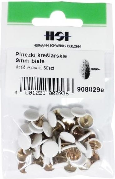 Pinezki kreślarskie 9 mm białe 908829E Głuchołazy
