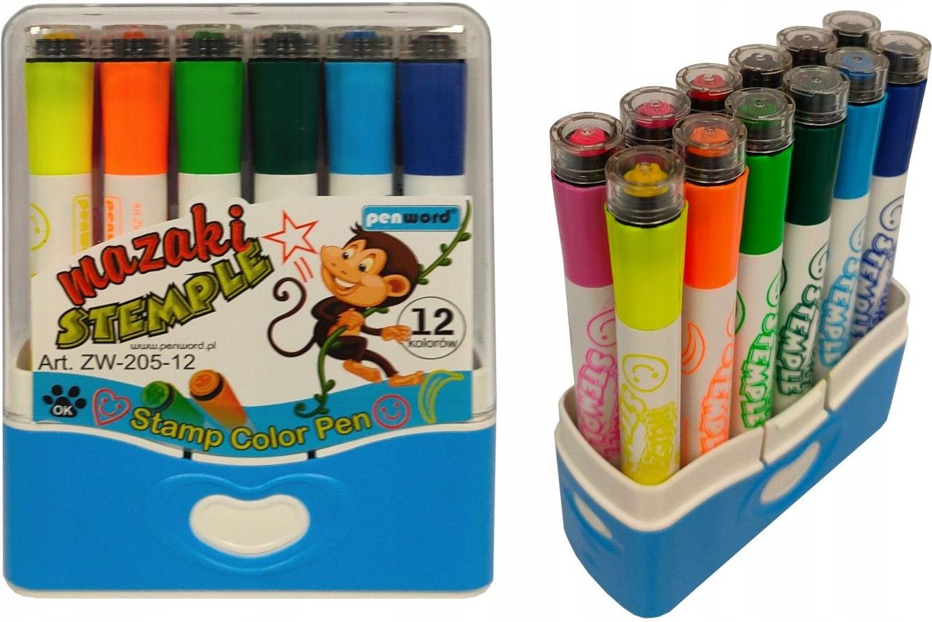 Mazaki ze stempelkami Pisaki ze Stempelkami - 12 Kolorów To idealne rozwiązanie do rysowania, pisania i ozdabiania. Cechy produktu Tusz na bazie wody – bezpieczny i łatwo zmywalny. Wentylowana zatyczka – zapewnia możliwość oddychania w przypadku połknięcia, co zwiększa bezpieczeństwo użytkowania. Grubość linii pisania: 1-3 mm. Średnica pieczątki: 8 mm. Zestaw zawiera 12 intensywnych kolorów. Zgodne z wymaganiami UE – bezpieczne dla dzieci. Dostępne opakowania w dwóch kolorach: niebieskim i różowym. Idealne do szkoły, domu i kreatywnych zabaw!