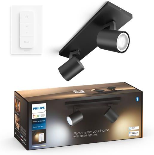 Philips Hue  oświetlenie punktowe Runner Rozbuduj system oświetleniowy Philips Hue, dodając do niego emitujące białe nastrojowe światło reflektory, aby móc cieszyć się zarówno ciepłym, jak i chłodnym białym światłem. Inteligentne sterowanie wymaga użycia mostka Hue dostarczanego z zestawem …