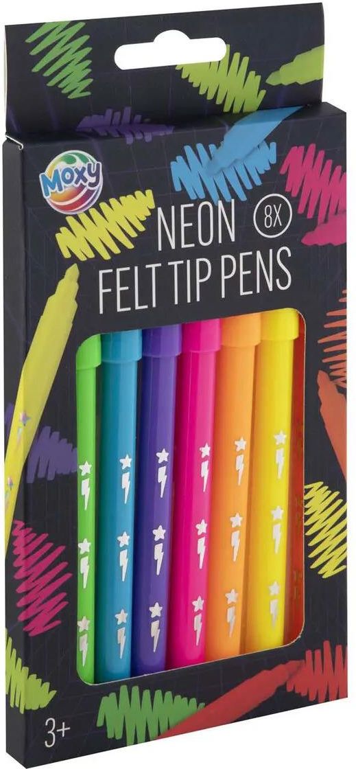 Zestaw neonowych flamastrów Moxy – 8 sztuk Dodaj odrobinę kreatywności do swoich projektów dzięki wysokiej jakości neonowym pisakom Moxy! Ten zestaw to idealne rozwiązanie zarówno dla artystów, uczniów, jak i osób, które chcą nadać swoim notatkom i rysunkom elegancki, subtelny wygląd Wiek: 3+