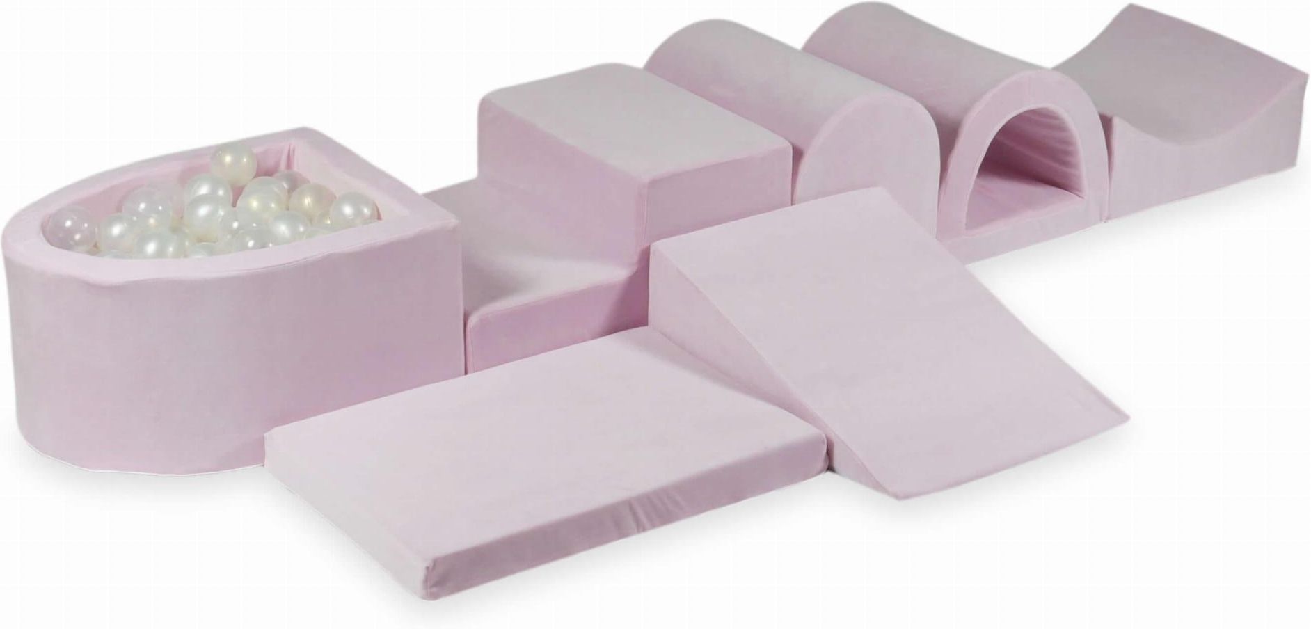 Mimii Największy Mimii Piankowy Plac Zabaw Z Basenem Micro Velvet Soft Jasnoróżowy + 100 Piłek (Przezroczyste Perłowe Opalizujące) Gniew