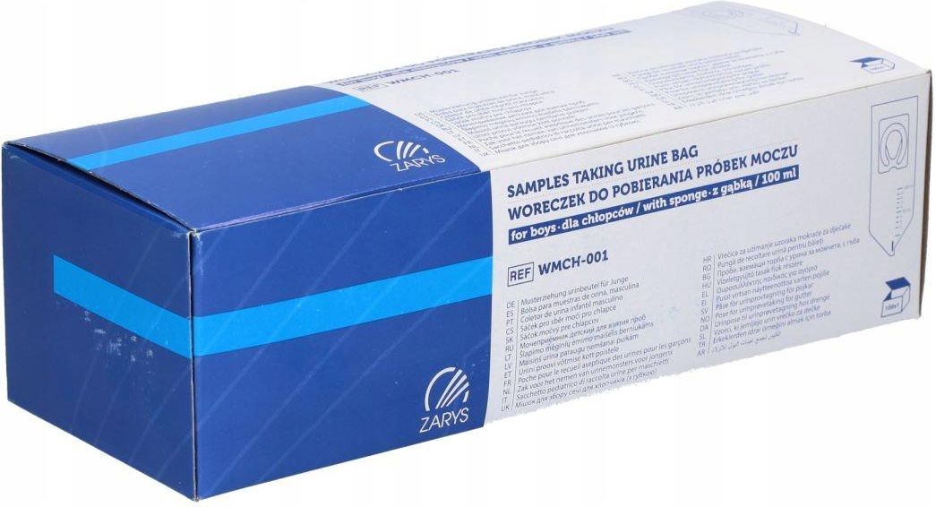 Woreczek do pobierania moczu dla chłopców z gąbką, sterylny, pojemność 100ml - opakowanie a 100 sztuk, osobno pakowane. Bezlateksowy woreczek do pobierania próbek moczu o pojemności 100 ml, wykonany z delikatnej, mocnej folii PE. Samoprzylepna część woreczka pokryta antyalergicznym klejem, dodatkowe uszczelnienie wykonane z antyalergicznej pianki. Sterylny wyrób jednorazowy, przeznaczony do zbiórki moczu i pobierania próbek od niemowląt i małych dzieci, dedykowany chłopcom. Właściwości pojemność 100 ml, wymiary: 19cm x 7cm - 100 sztuk w kartoniku, każdy woreczek indywidualnie zapakowany Wykonany z mocnej folii PE, bezpiecznej dla skóry dziecka Wyraźna i czytelna skala, adekwatna do pomiaru diurezy, o wysokiej dokładności pomiaru co 10 ml Samoprzylepna część woreczka pokryta antyalergicznym klejem Występuje w wersji z dodatkowym piankowym uszczelnieniem zabezpieczającym przed sklejaniem się ścianek woreczka, umożliwiając swobodny spływ moczu Wersja dla chłopców Nie zawiera lateksu Nie zawiera ftalanów Jednorazowego użytku Sterylny, sterylizowany tlenkiem etylenu Okres trwałości: 5 lat Każdy woreczek pakowany pojedynczo w opakowanie foliowe To jest wyrób medyczny. Używaj go zgodnie z instrukcją dołączoną do opakowania lub etykietą.