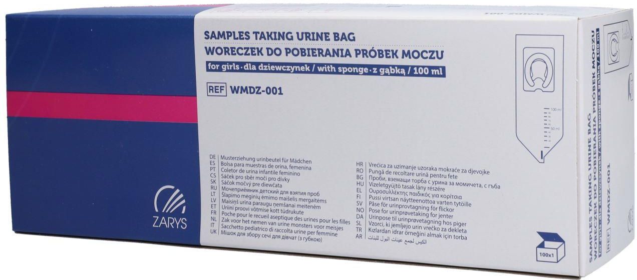 Zarys Woreczek Do Pobierania Moczu Z Gąbką- Dziewczynki Sterylny Opak. 100Szt. Gniew