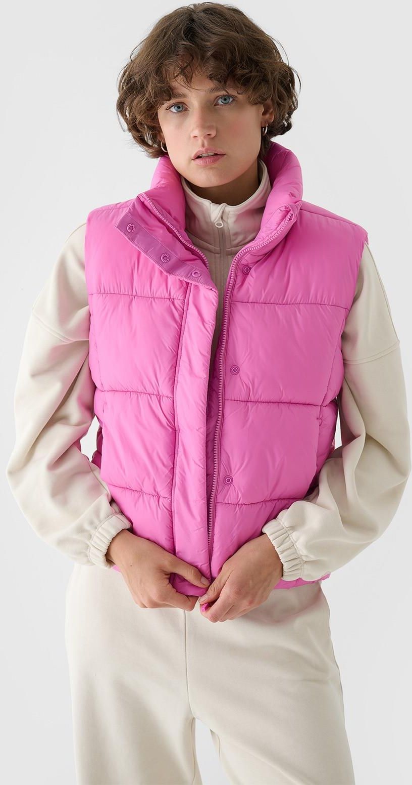 4F Bezrękawnik puchowy z wypełnieniem syntetycznym damski - różowy 4FWAW24TVJAF140-54S-XXL Sugerowana cena detaliczna: 199.99 Miejska energia: kamizelka dla aktywnych na co dzień Bezrękawnik ze stójką damski idealnie sprawdzi się jako element zarówno casualowych, jak i sportowych stylizacji. …