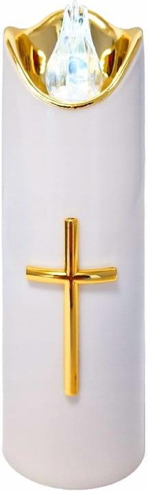 CORTINA Wkład LED Rico biało-złoty 17,5 cm – ekologiczny i wodoodporny wkład do zniczy Wybierz elegancki i nowoczesny wkład LED CORTINA Rico, który łączy tradycyjny wygląd świecy z nowoczesną technologią LED. Emituje delikatne, ciepłe światło o realistycznym efekcie migotania, przypominającym prawdziwy płomień. Dzięki zastosowaniu energooszczędnej diody LED wkład działa wyjątkowo długo, nie wydziela ciepła, dymu ani dwutlenku węgla. Jest w pełni ekologiczny, bezpieczny i wodoodporny, dlatego doskonale sprawdzi się na zewnątrz – na cmentarzach, nagrobkach i miejscach pamięci. To trwała i ekonomiczna alternatywa dla tradycyjnych wkładów parafinowych – nie wymaga wymiany wosku, a w zestawie znajdują się już baterie, dzięki czemu produkt jest gotowy do użycia od razu po zakupie. Zalety wkładu LED CORTINA Rico: Technologia LED – długotrwałe, energooszczędne źródło światła, Realistyczny efekt płomienia – subtelne, migoczące światło jak w prawdziwej świecy, Wodoodporny i odporny na warunki atmosferyczne – działa nawet podczas deszczu i mrozu, Ekologiczny – bez dymu, sadzy i emisji CO₂, Bezpieczny w użytkowaniu – nie wymaga ognia ani wymiany wkładu, Gotowy do użycia – baterie w zestawie, może być używany jako samodzielny znicz LED. Zastosowanie: wkład do tradycyjnych zniczy szklanych i metalowych, samodzielna świeca LED na cmentarz, dekoracja nagrobków i miejsc pamięci, bezpieczna alternatywa dla świec woskowych. Parametry techniczne: Marka: CORTINA Model: Rico Wysokość: 17,5 cm Średnica: 5 cm Kolor obudowy: biało-złoty Kolor płomienia: biały Zasilanie: baterie (w zestawie) Typ światła: LED Cechy: wodoodporny, ekologiczny, energooszczędny CORTINA Wkład LED Rico 17,5 cm to stylowy, trwały i ekologiczny sposób na podtrzymanie światła pamięci. Dzięki subtelnemu blaskowi i odpornej konstrukcji zapewnia piękne, spokojne światło niezależnie od pogody – bez potrzeby częstej wymiany wkładów.