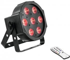 . . . Cechy Płaski reflektor LED z mieszaniem kolorów RGBWA+UV, z pilotem na podczerwień Smukła konstrukcja zapewniająca oszczędność miejsca Doskonałe kolory stałe i pastelowe oraz ultrafioletowe dzięki mieszaniu 6 kolorów Inteligentnie zaprojektowane złącza DMX i zasilania ułatwiają okablowanie 7 …