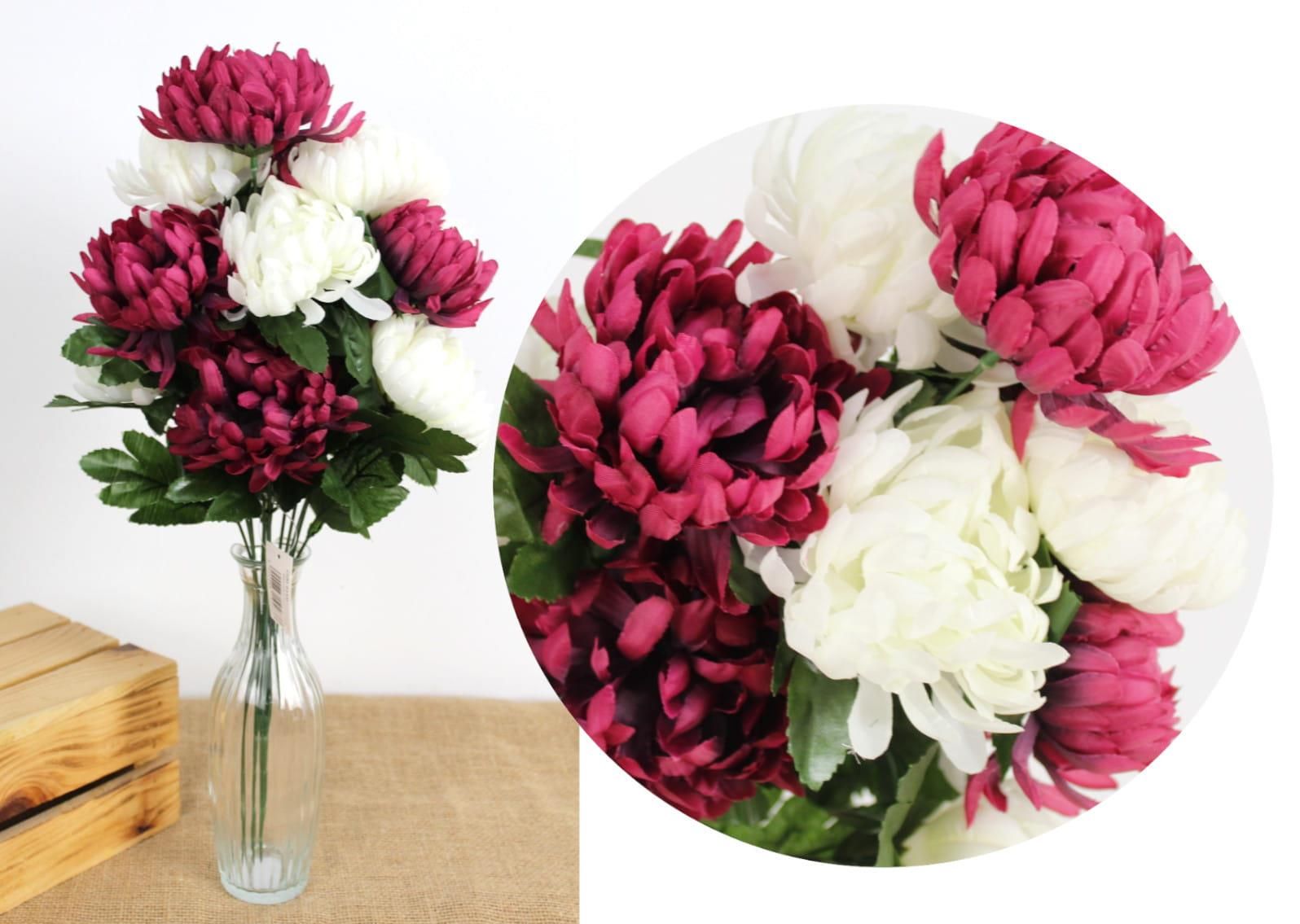 Hurt 7&7 Bukiet Sztucznych Chryzantem 50Cm 14 Łodyg Ciemnoróżowo Biały Gniewkowo